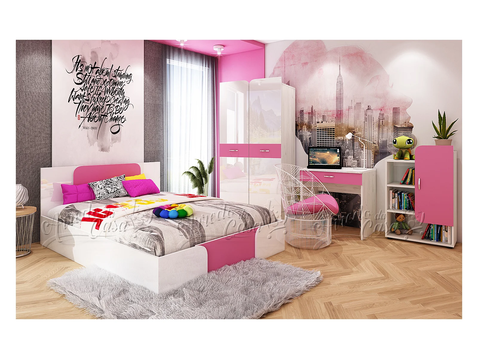 Cameretta completa moderna per ragazzi bianco e rosa CCU19