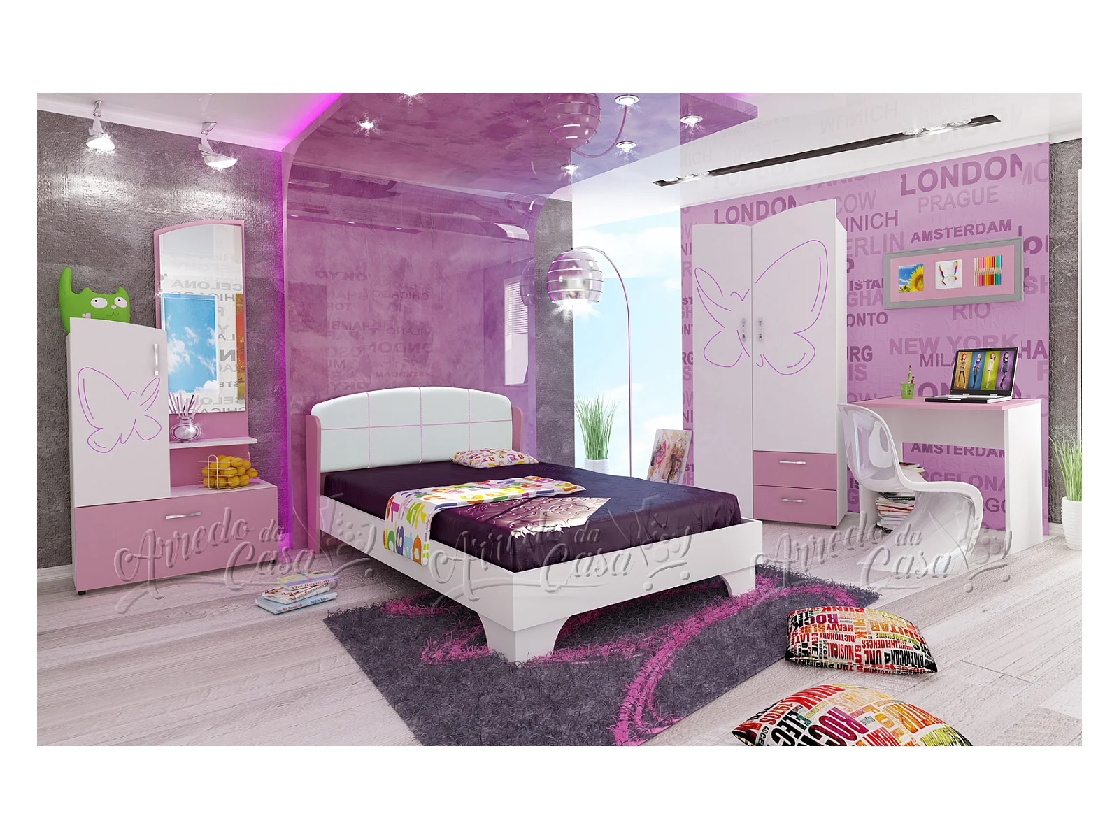 Cameretta moderna completa 120x190 cm bianco marmo e rosa CCU20