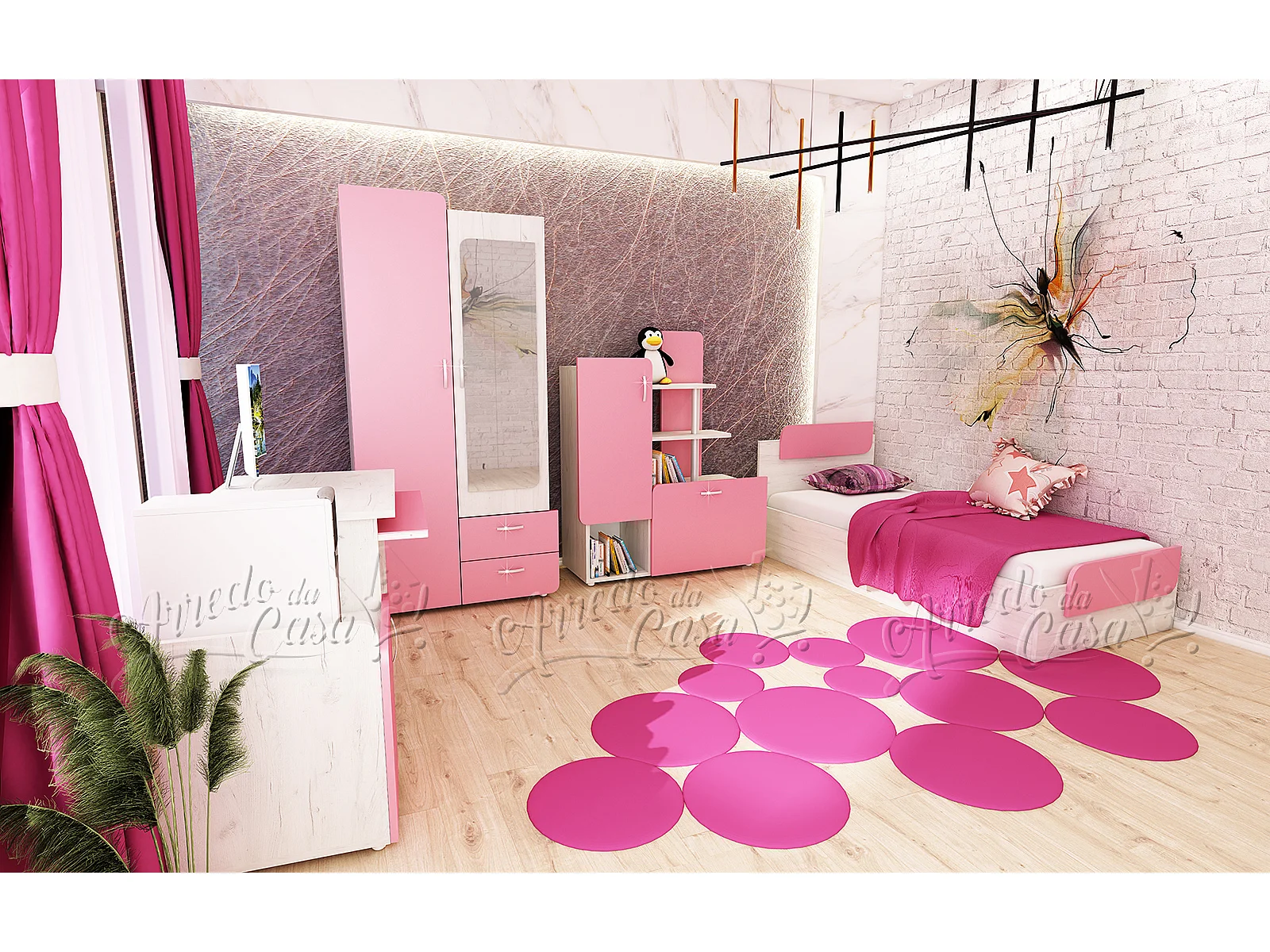 Cameretta per bambina rosa CCU11