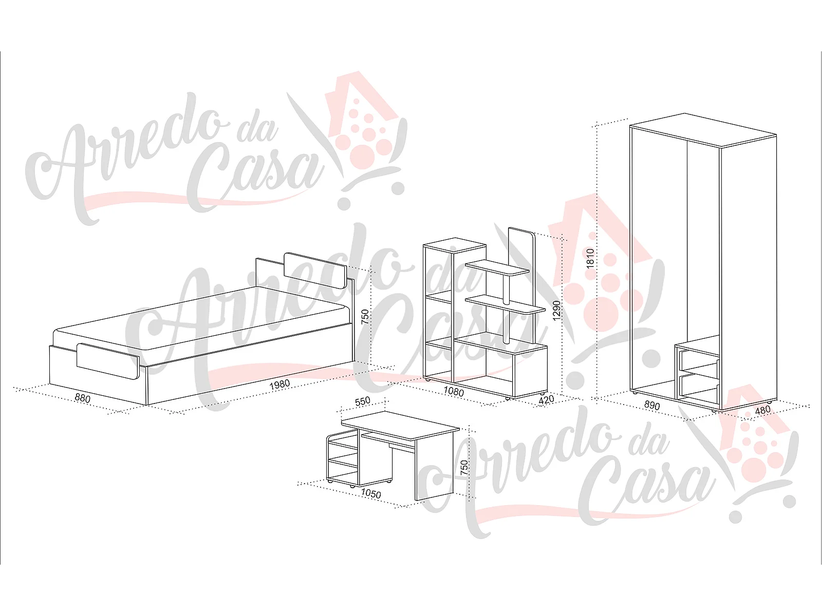 Cameretta a soppalco 90x200 CCI5
