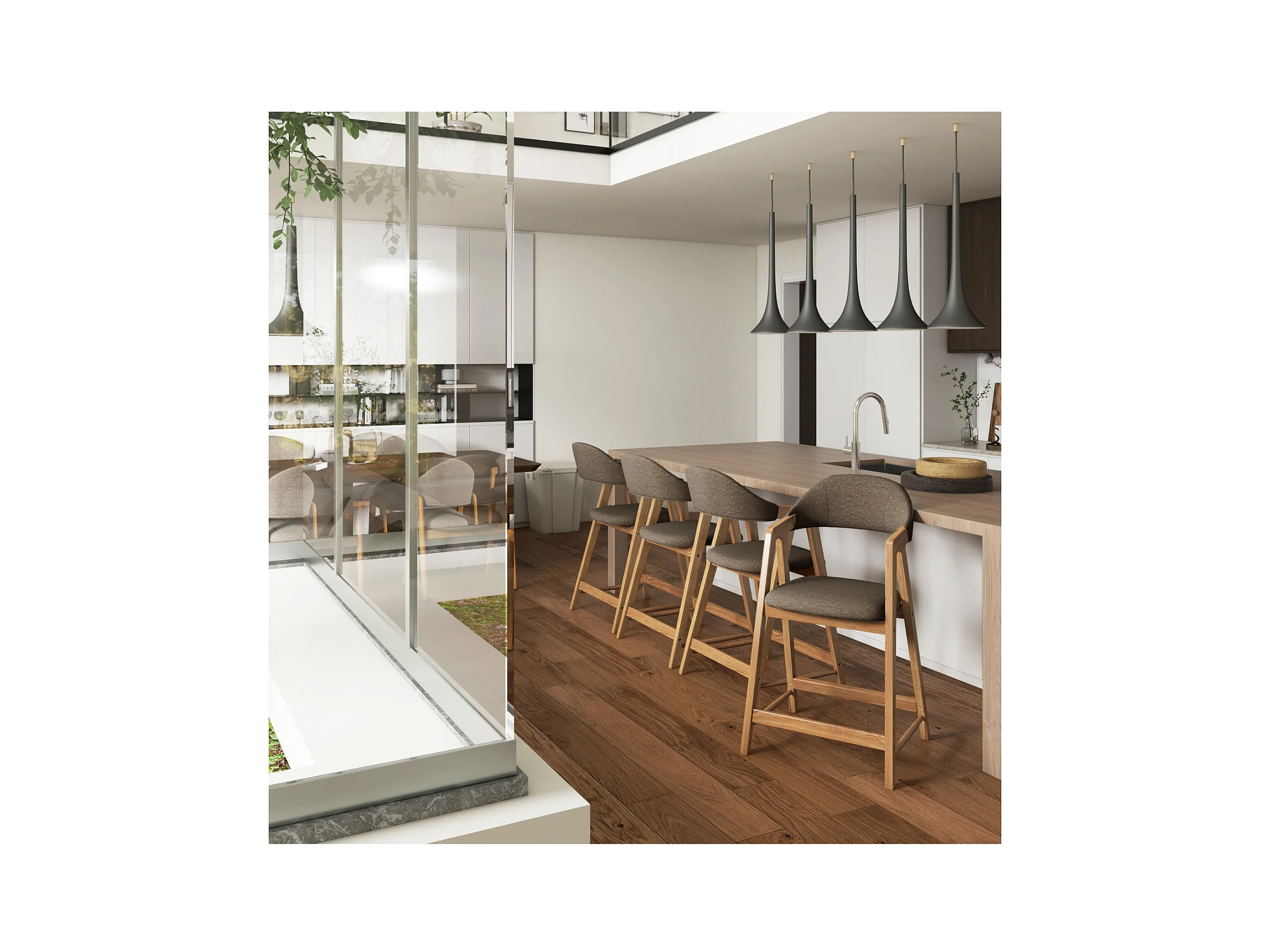 CAMILLE-Sedia da bar, tessuto marrone e frassino (x2)