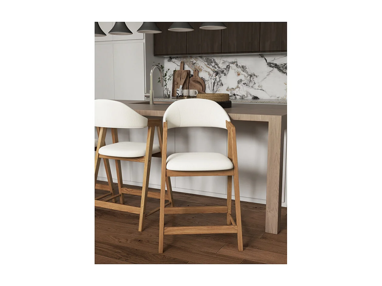 CAMILLE-Sedia da bar in tessuto ecrù e frassino (x2)