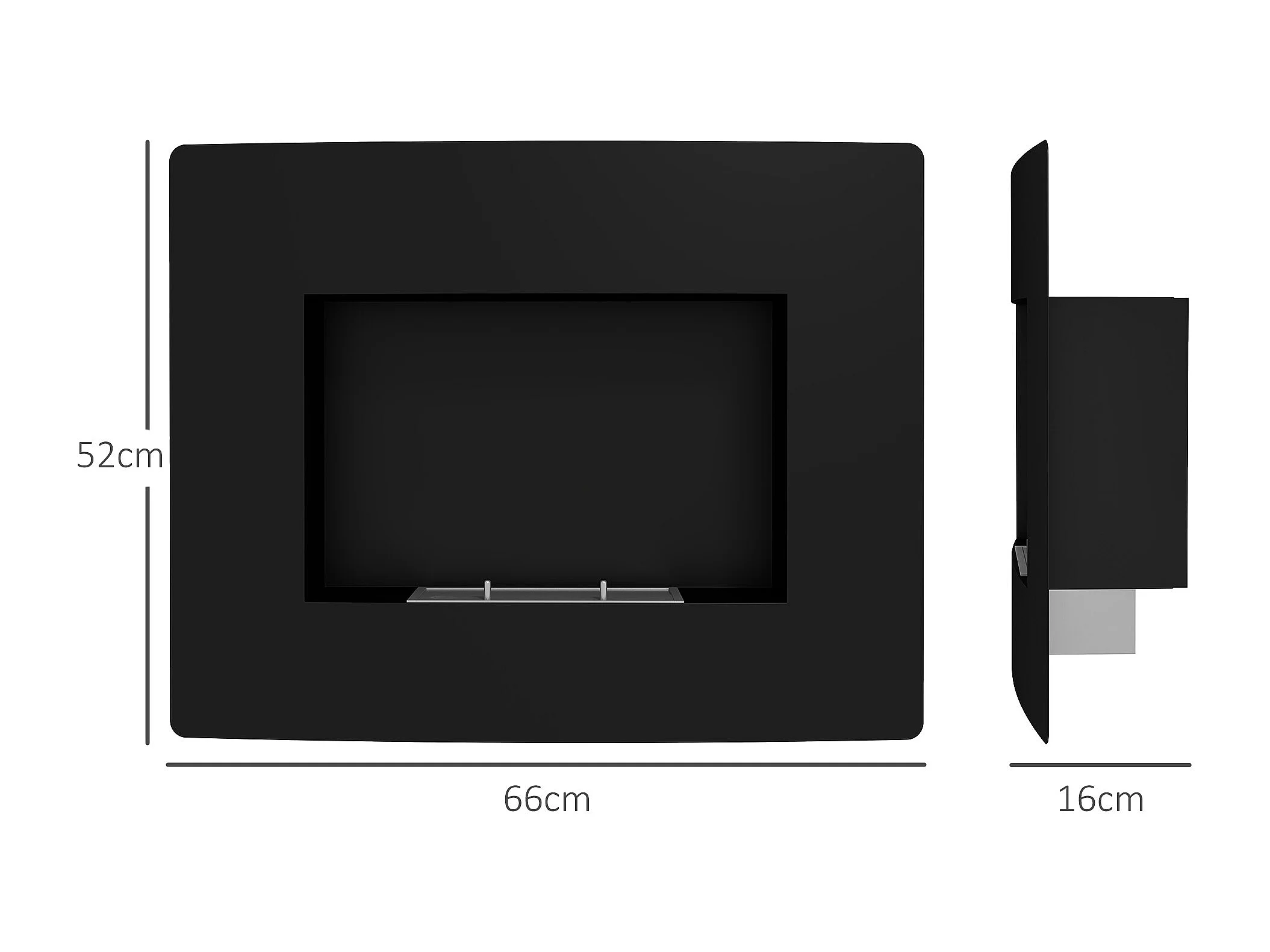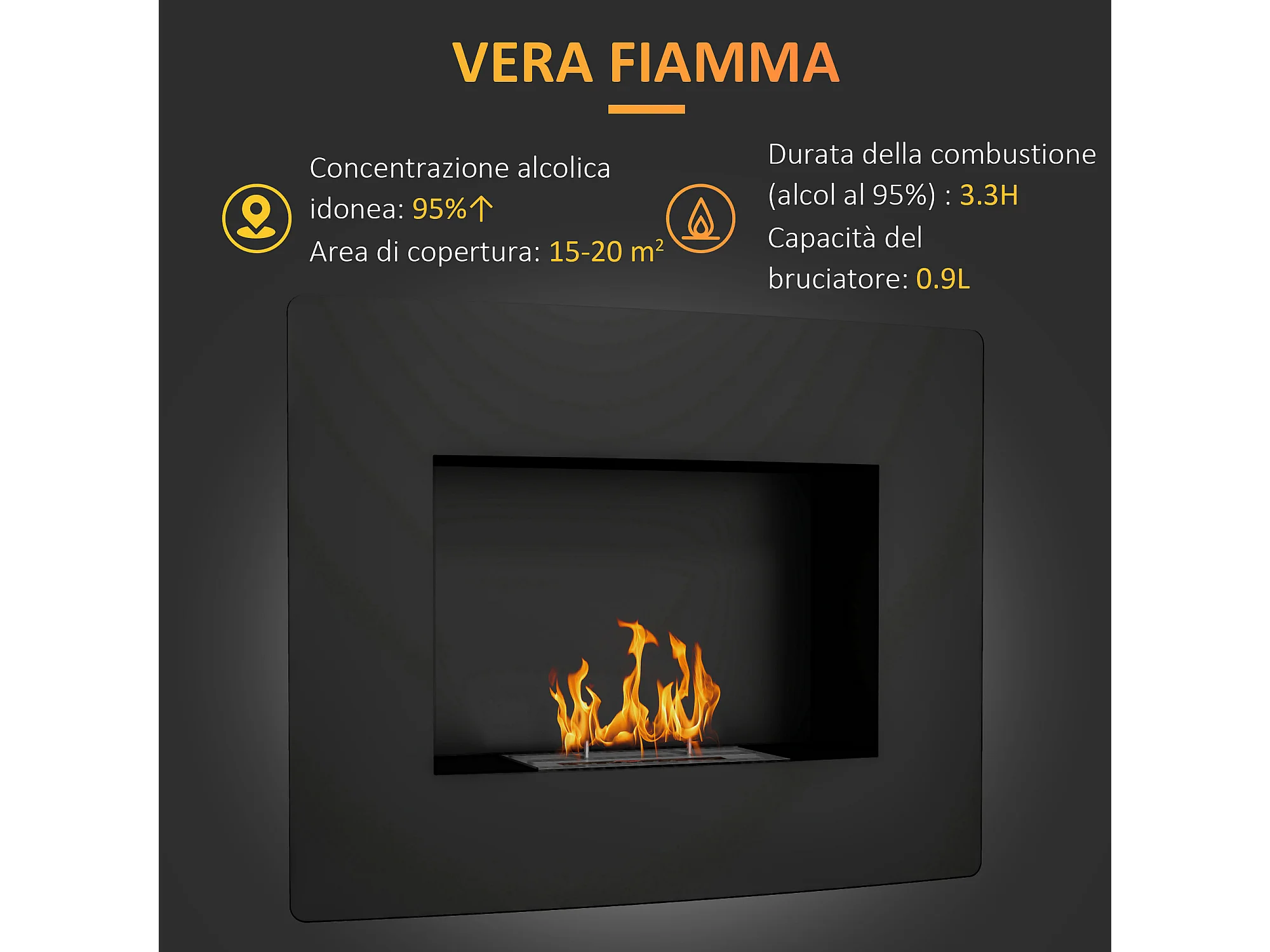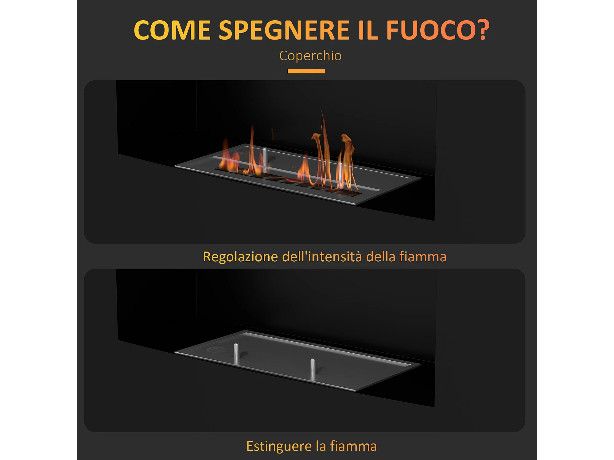 Caminetto a etanolo da incasso capacità 0.9 litri in acciaio nero