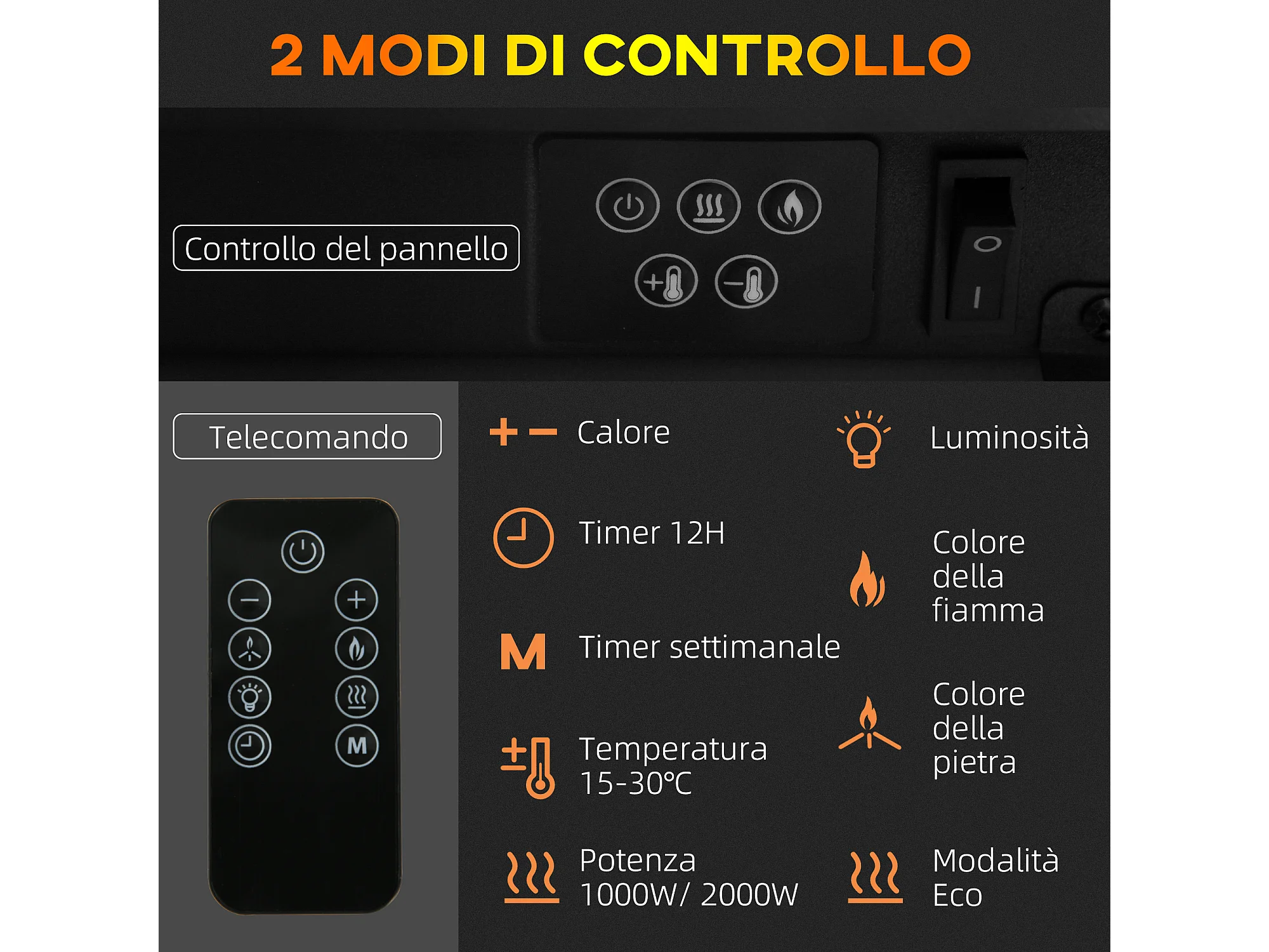 Caminetto elettrico a parete a 11 colori con timer 12h