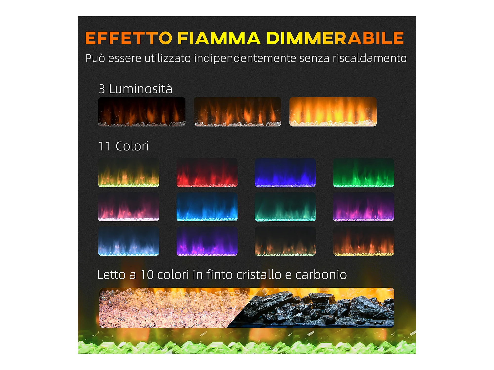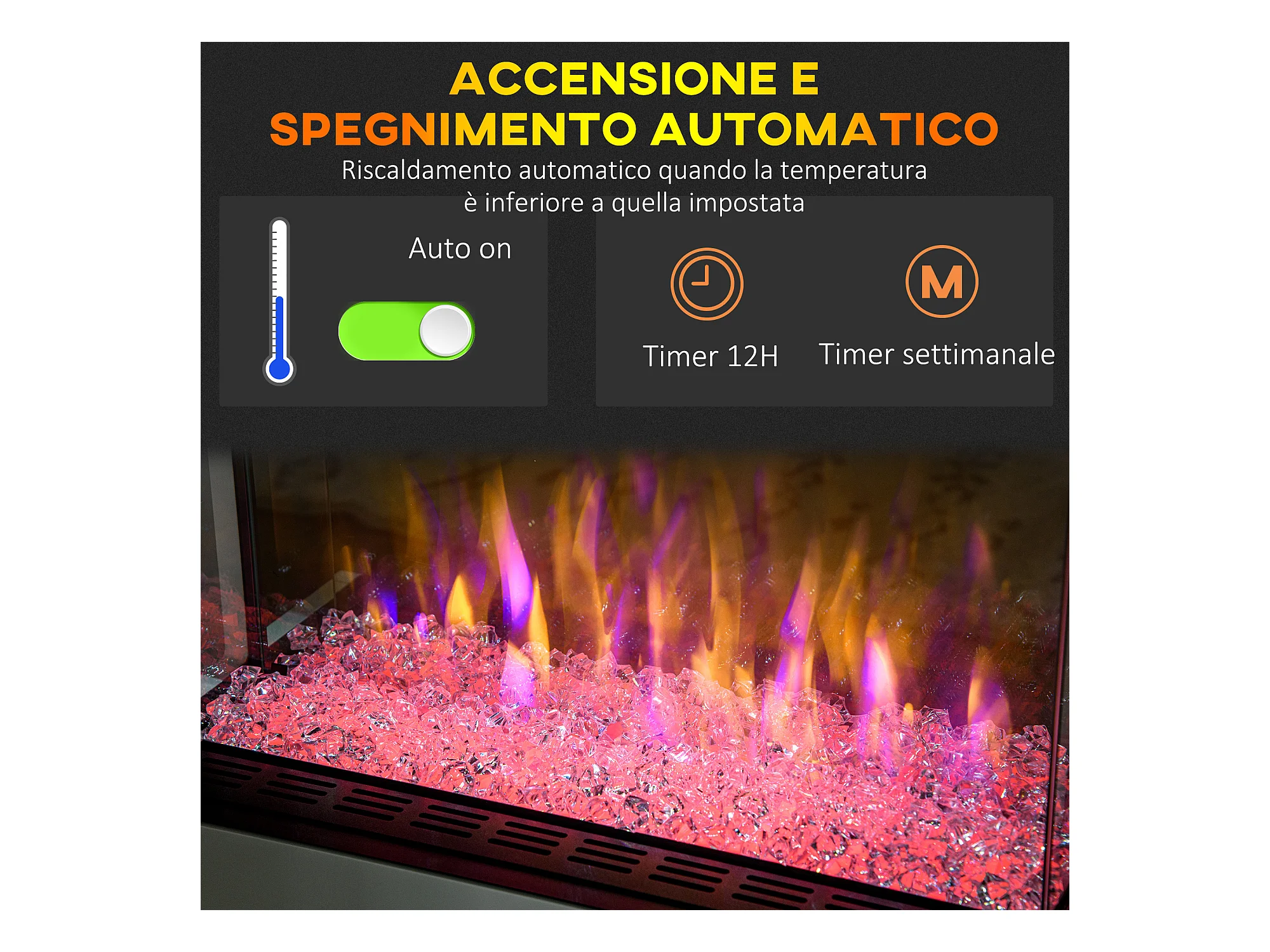 Camino elettrico con cornice effetto fiamma 3d realistico 3 modalità