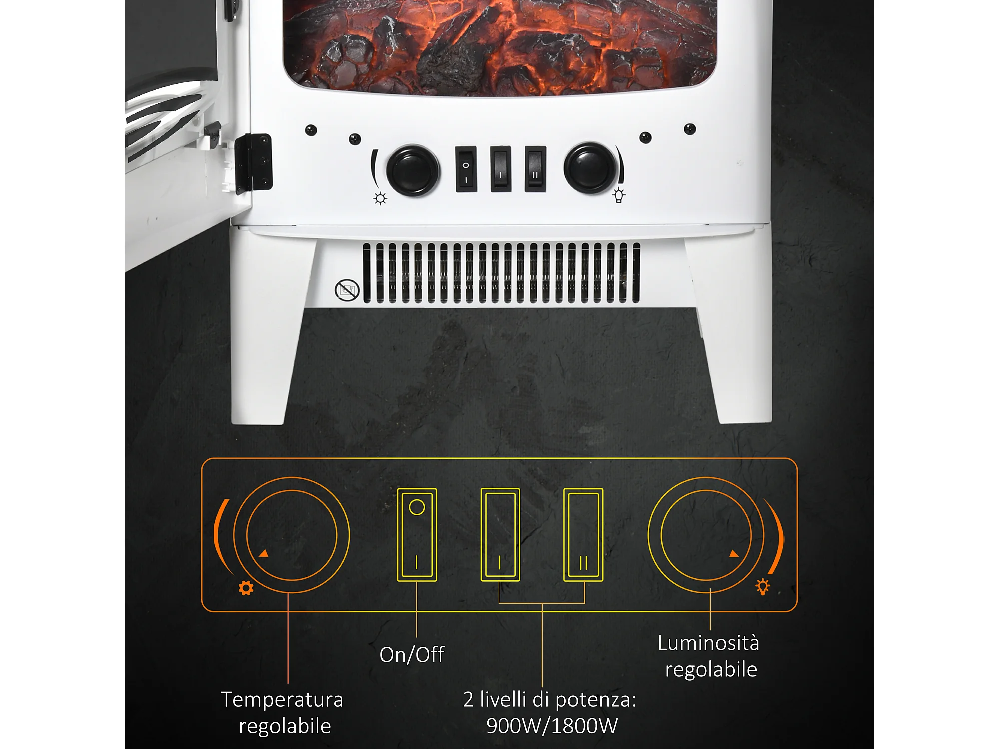 Caminetto elettrico regolabile 900w-1800w effetto fiamma led