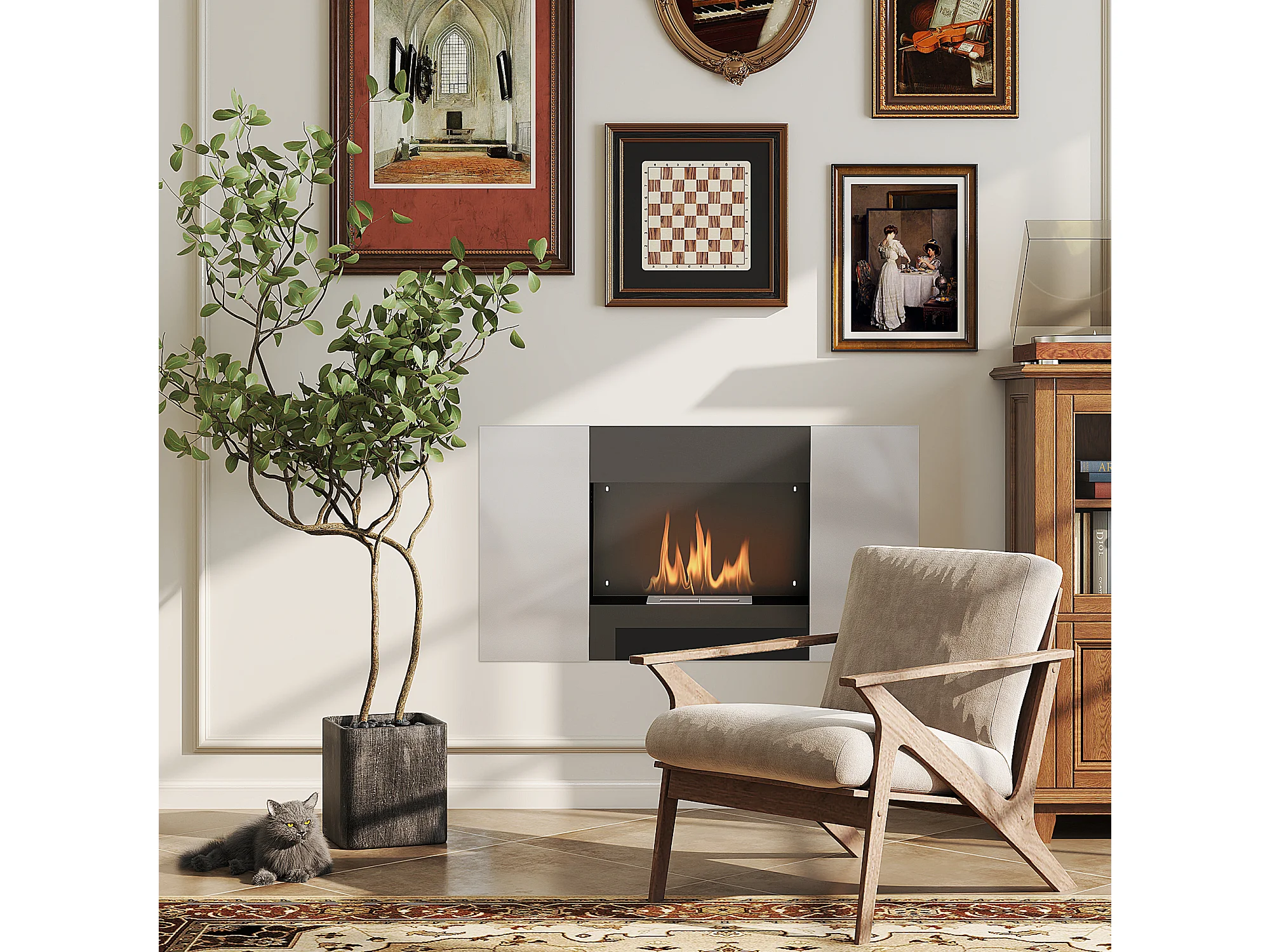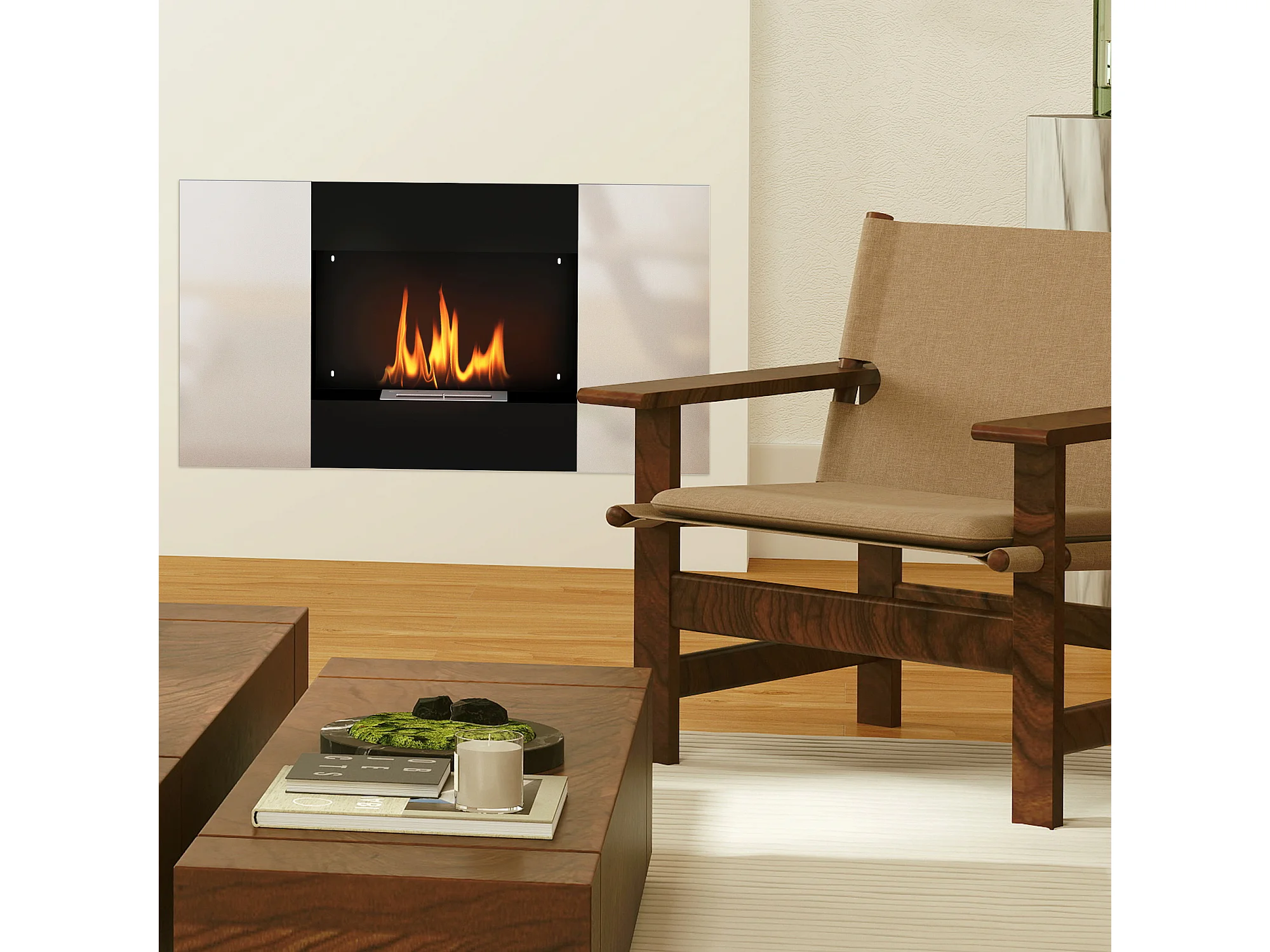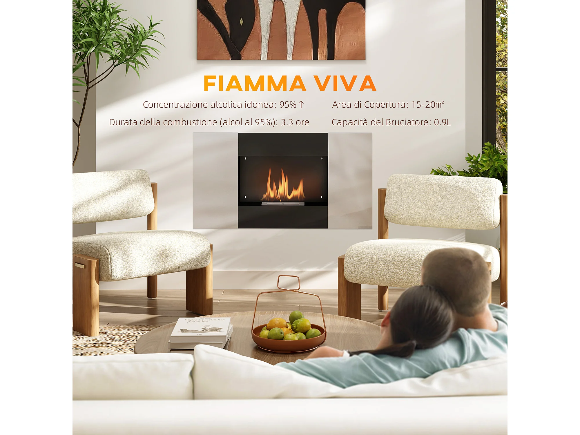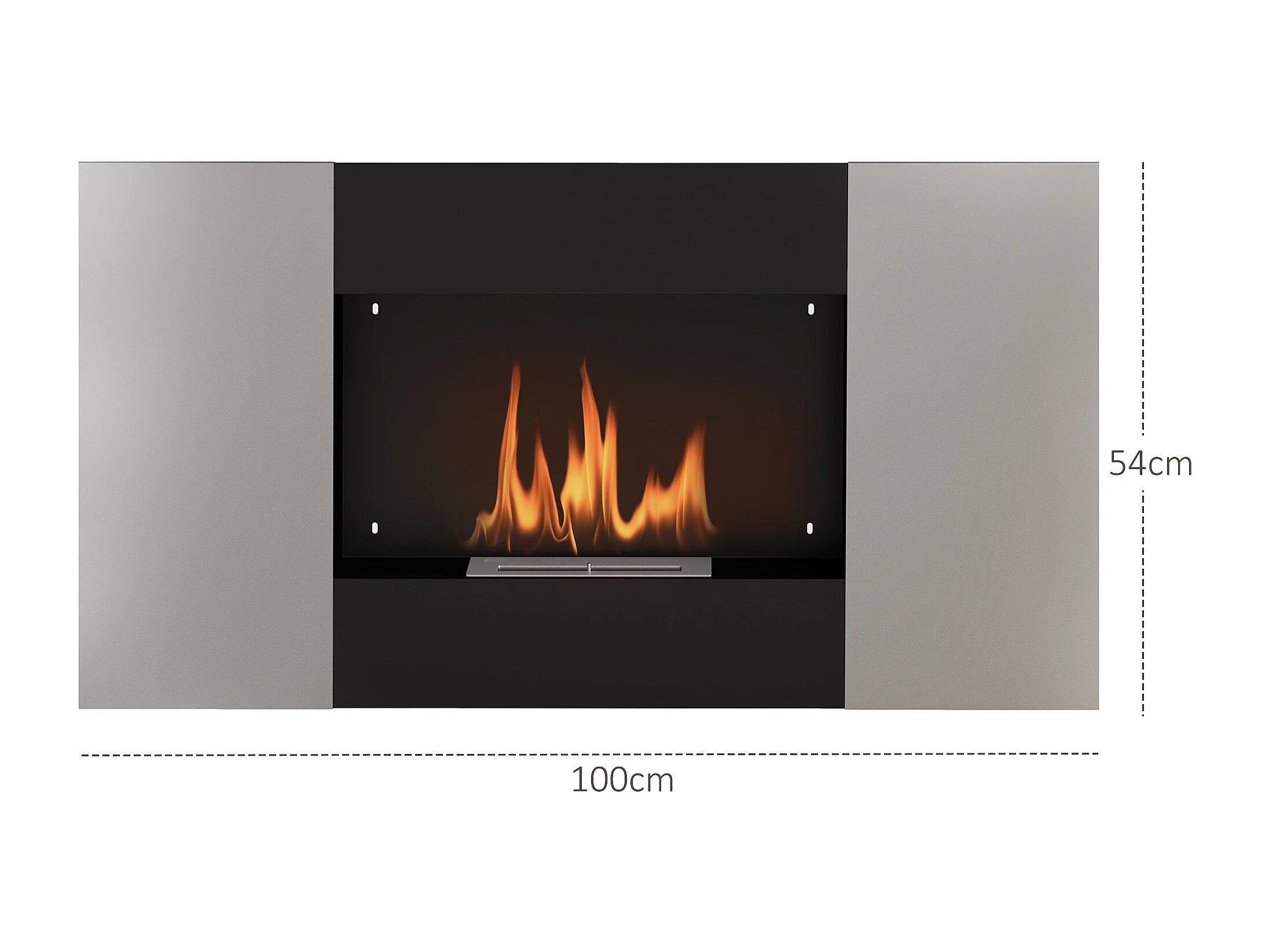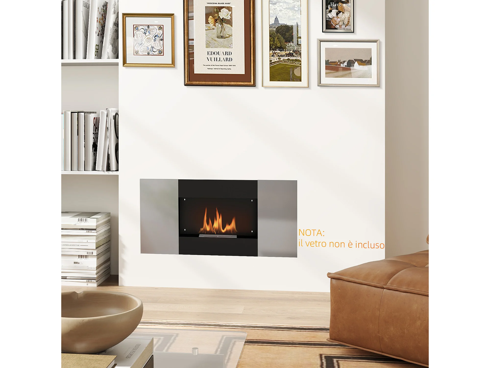 Camino a bioetanolo da parete in acciaio inox con 2 bruciatori 0.9lt