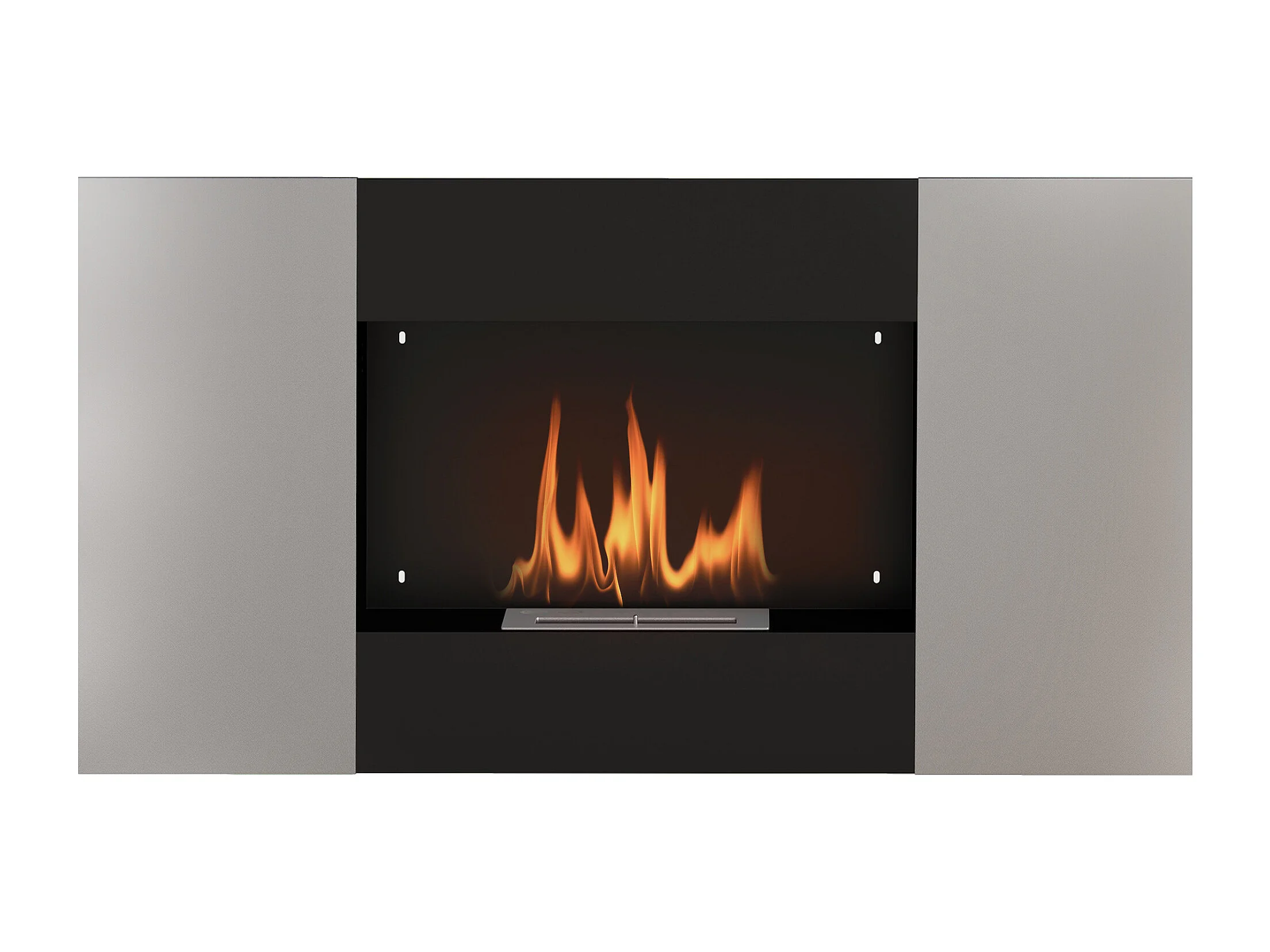 Camino a bioetanolo da parete con 3 serbatoi e coperchio argento nero