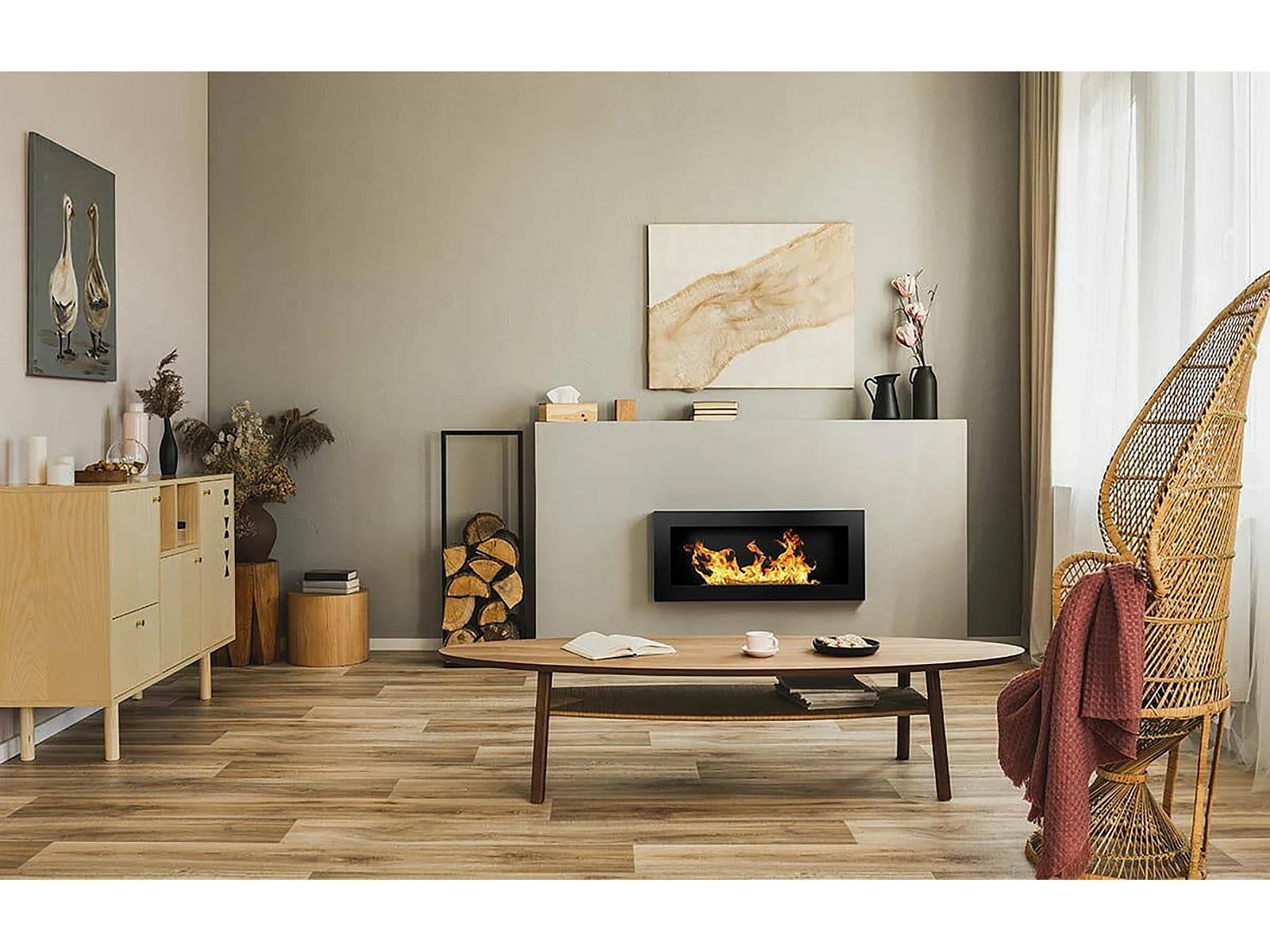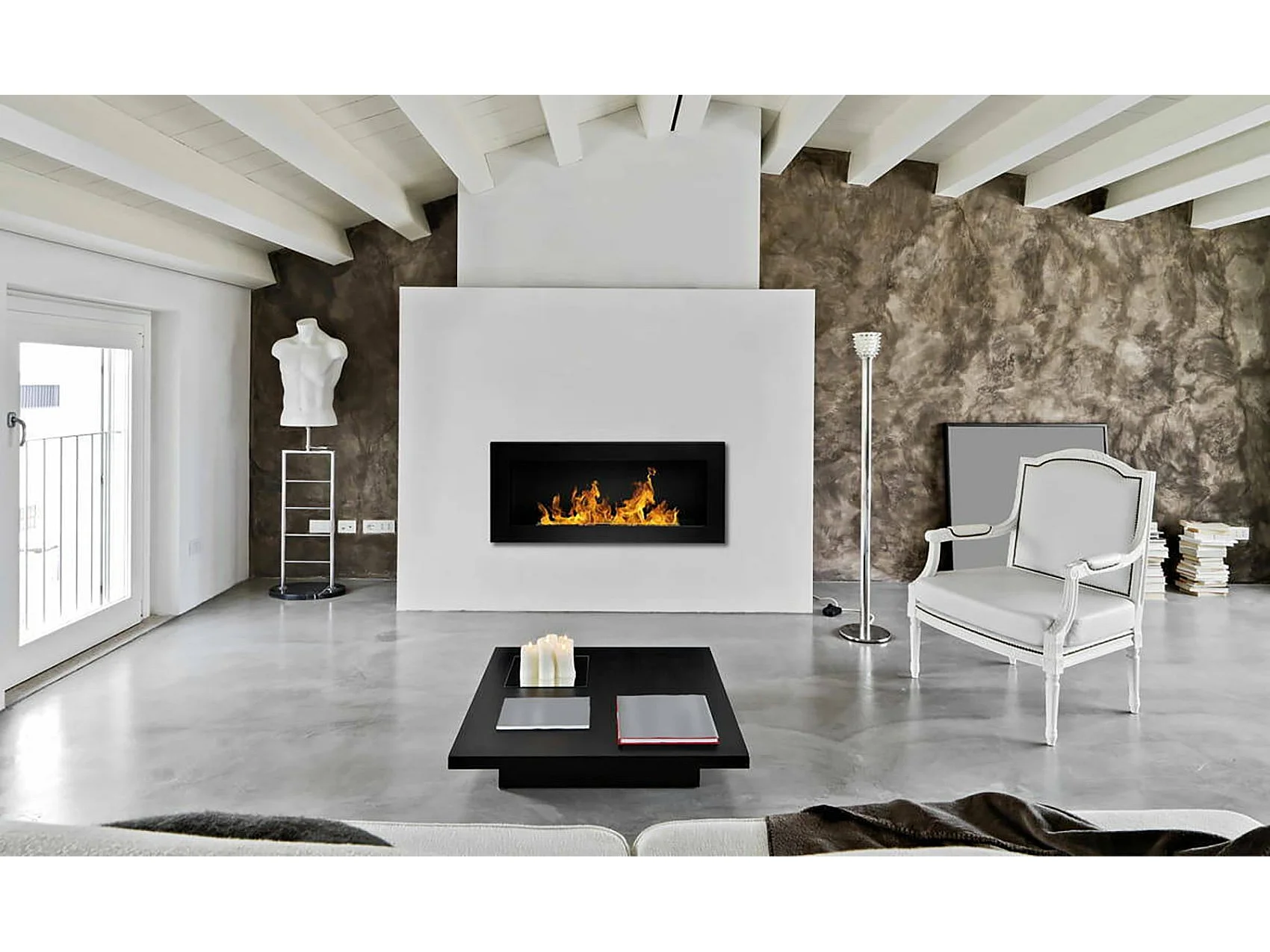 Camino a Bioetanolo Aisone, Capacità 0,75 lt Made in Italy, 12x90x39h cm Nero