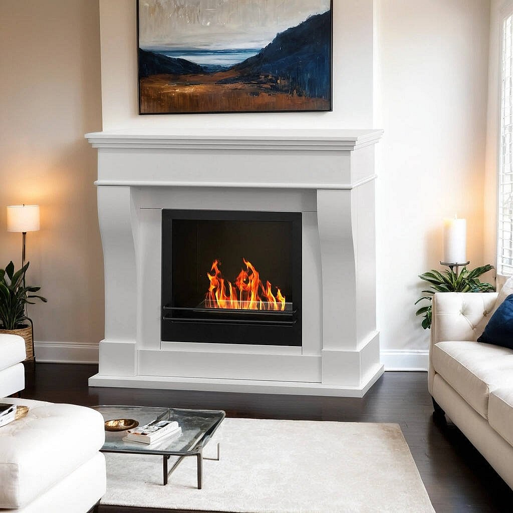 Washington - Camino a bioetanolo da terra 111x43xH99 cm, colore bianco