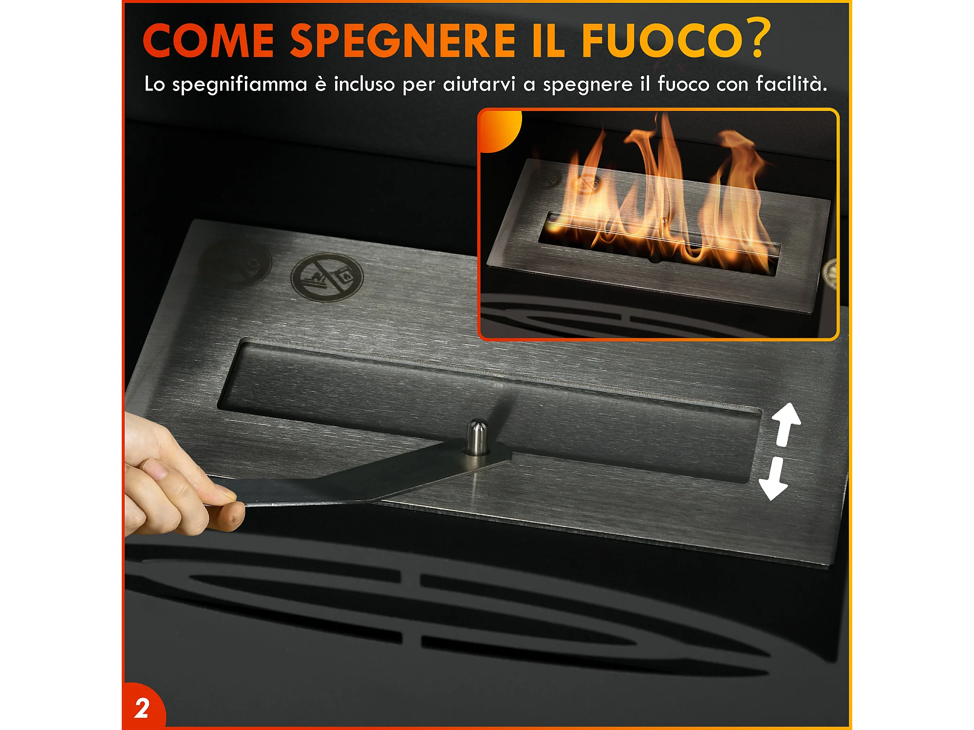 Caminetto bioetanolo con bruciatore 1.2 litri durata 3 ore nero