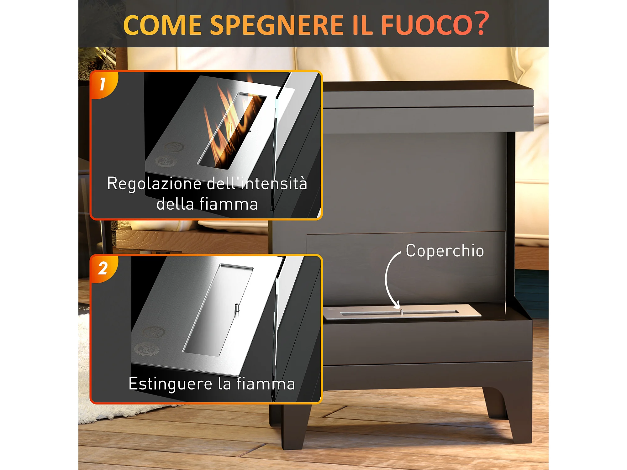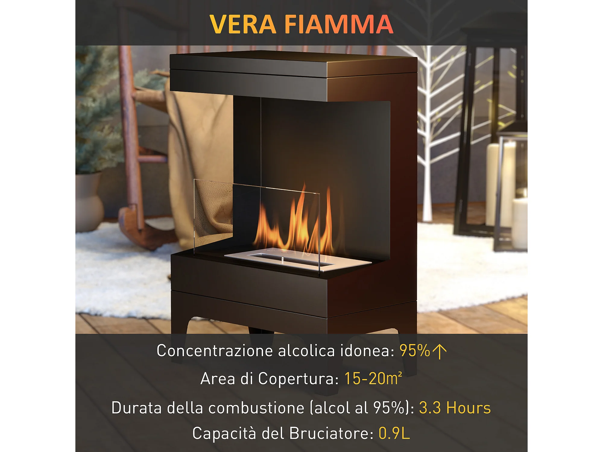 Caminetto a etanolo con bruciatore da 0.9L e durata 3.3 ore nero