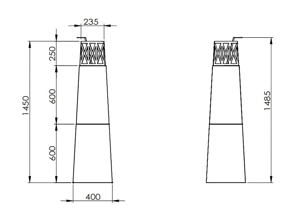 Camino a bioetanolo da giardino per esterno Vulcano Nero 40x40x145