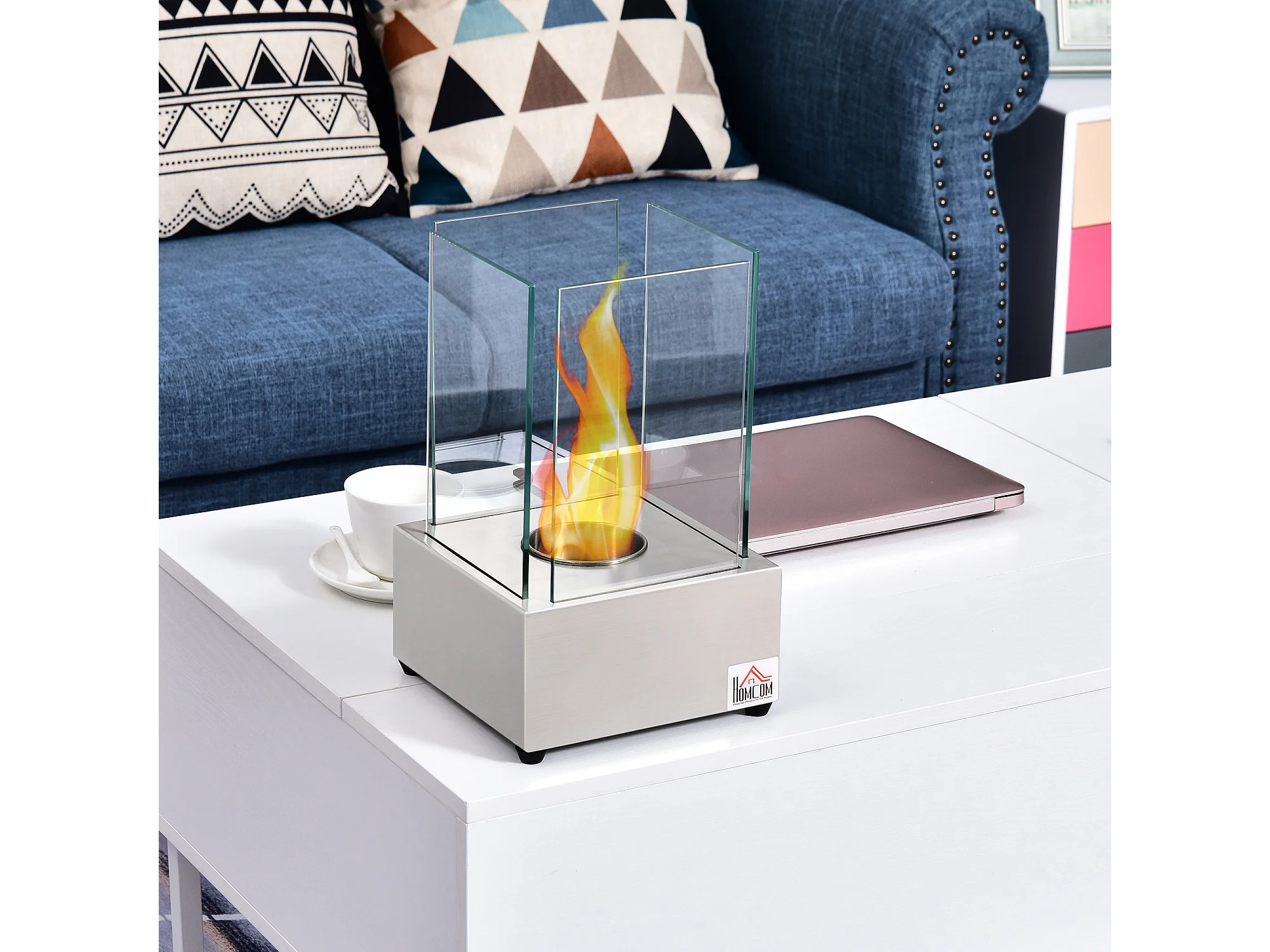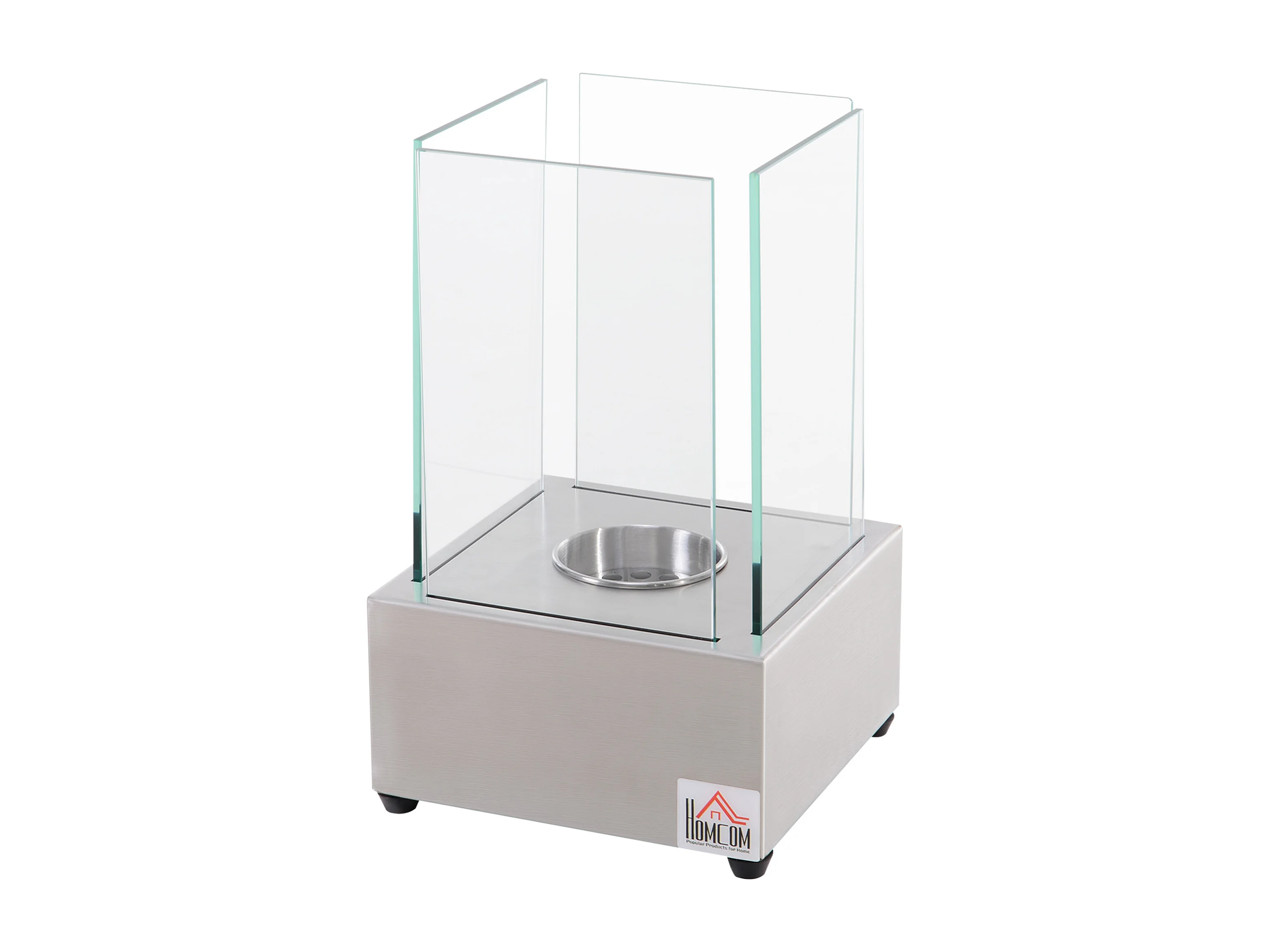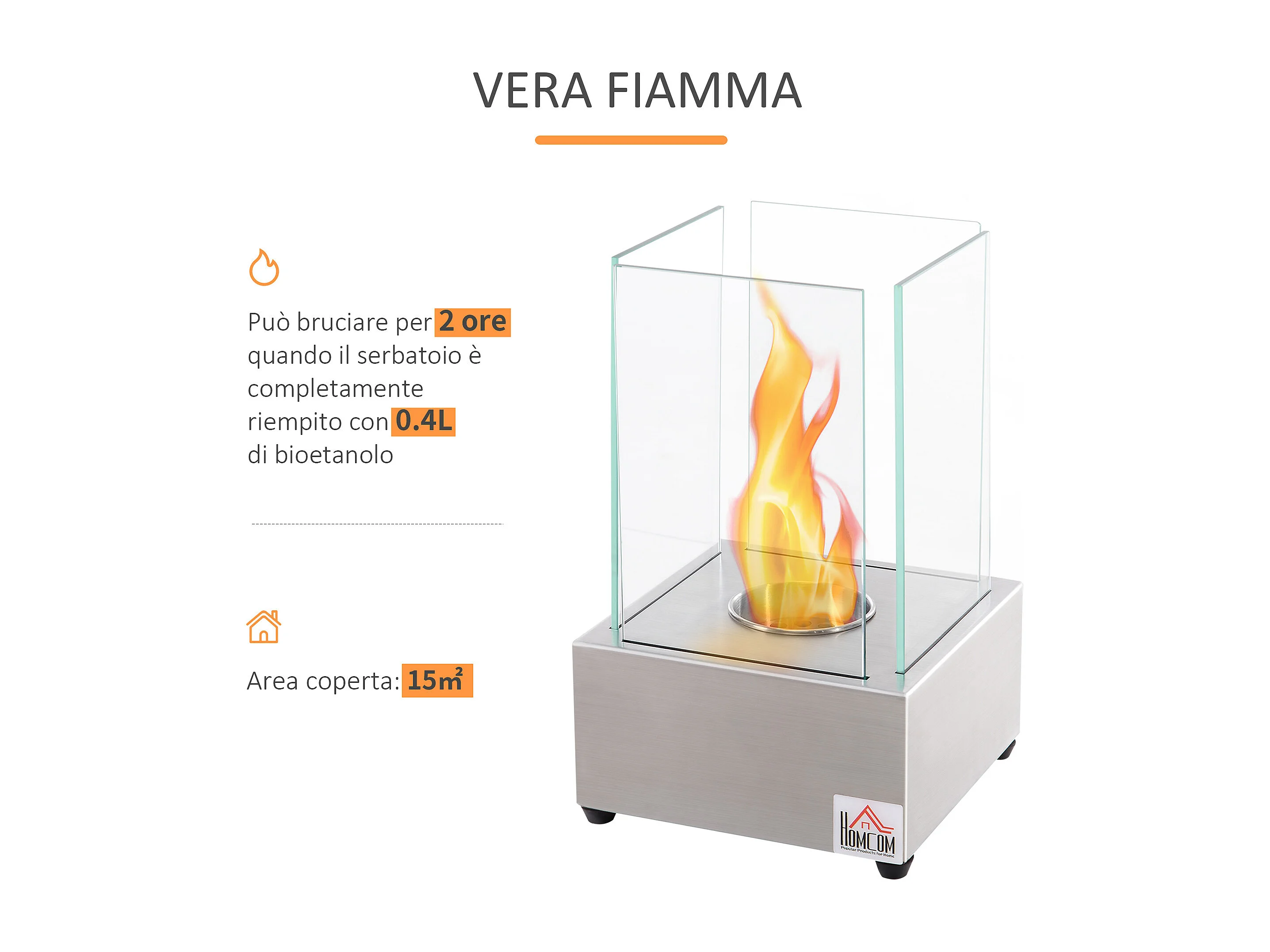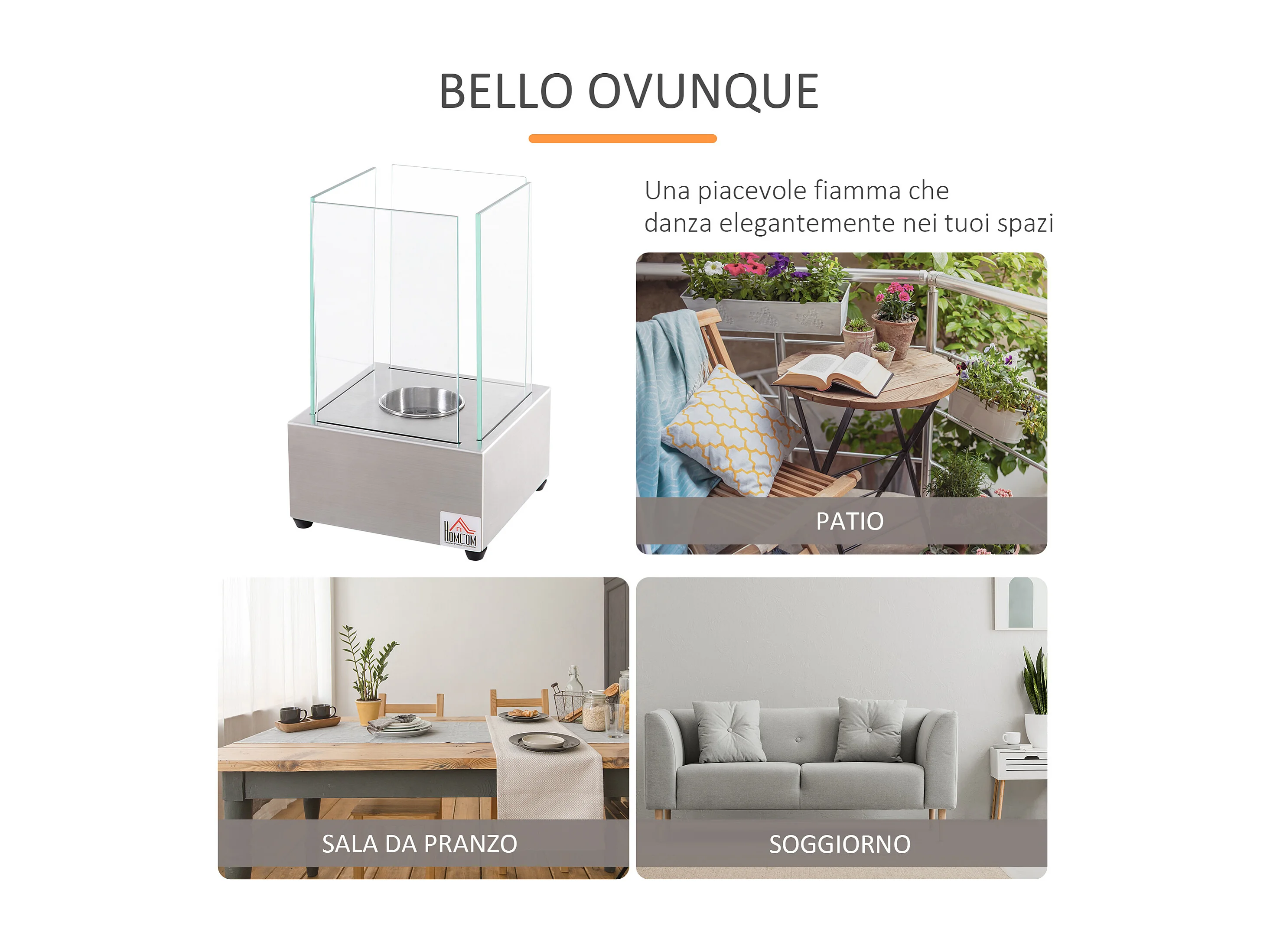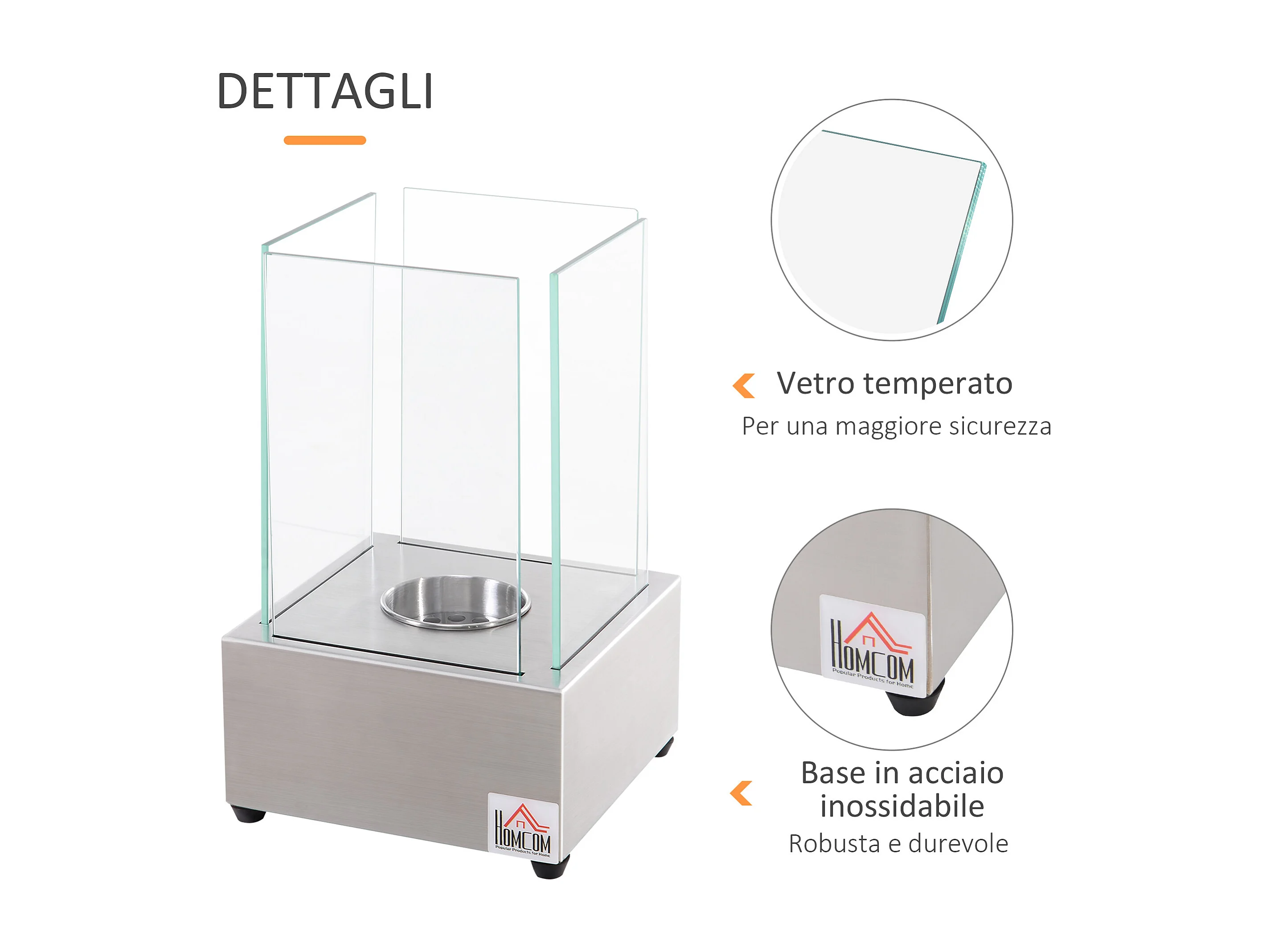 Camino a etanolo da tavolo in acciaio inox e vetro temperato