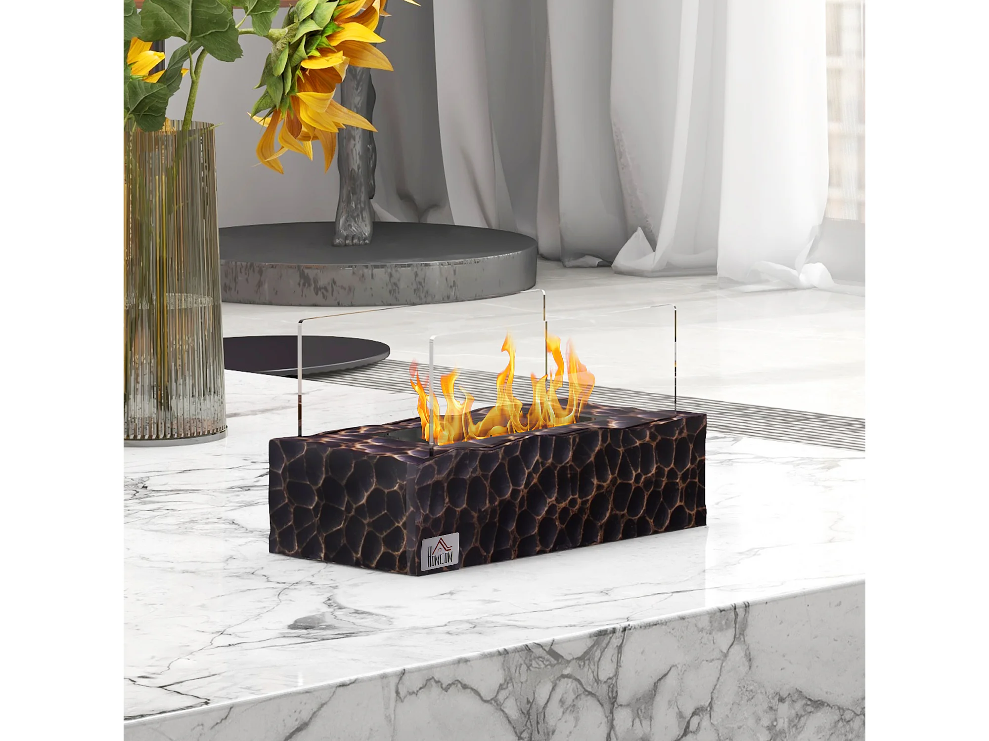 Giotto - Camino a bioetanolo da terra per interno ed esterno 100x30xH70 cm, colore nero