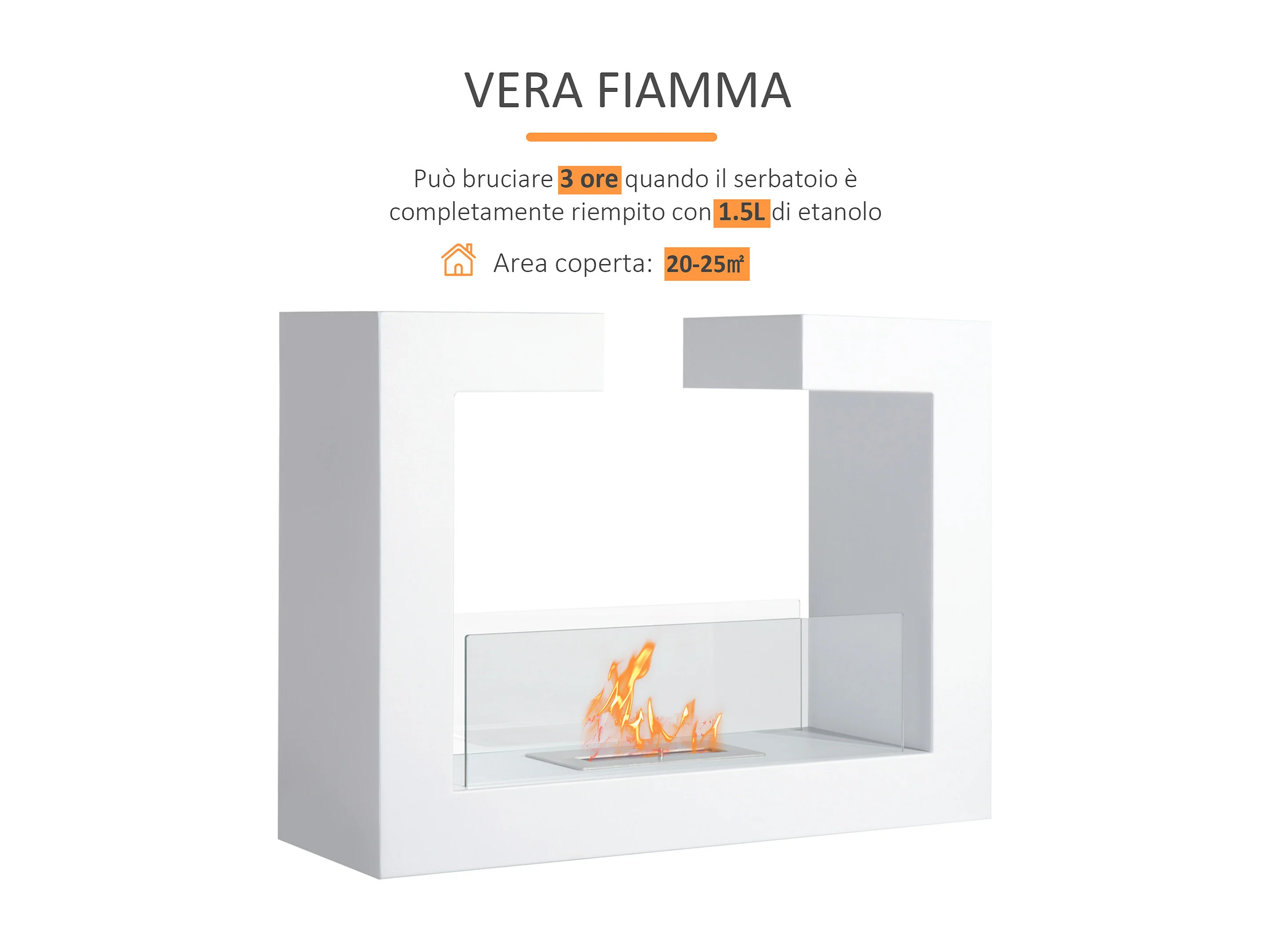 Camino a Bioetanolo Alife, Capacità 1,5 lt Made in Italy, 70x70x35h cm Bianco
