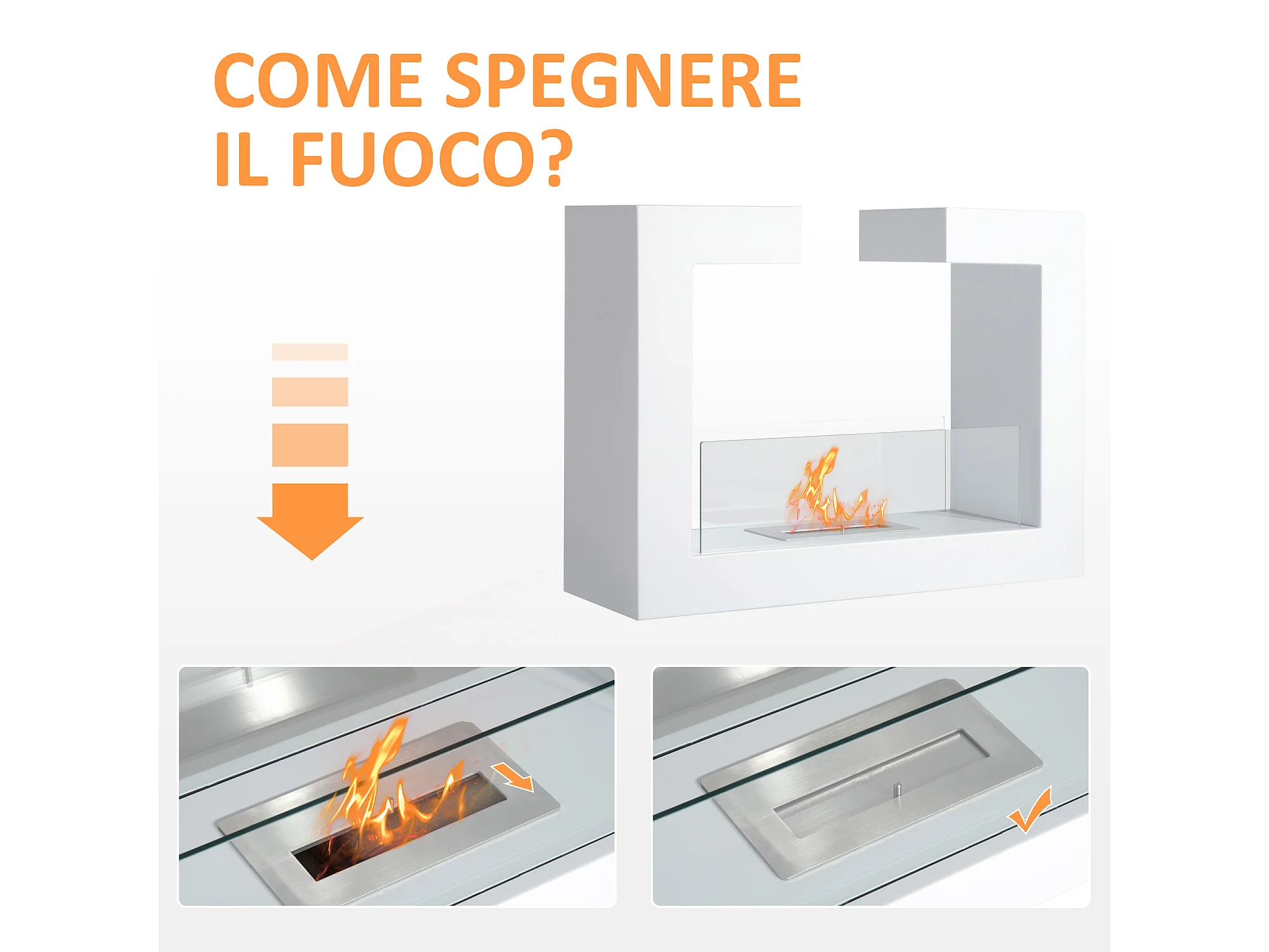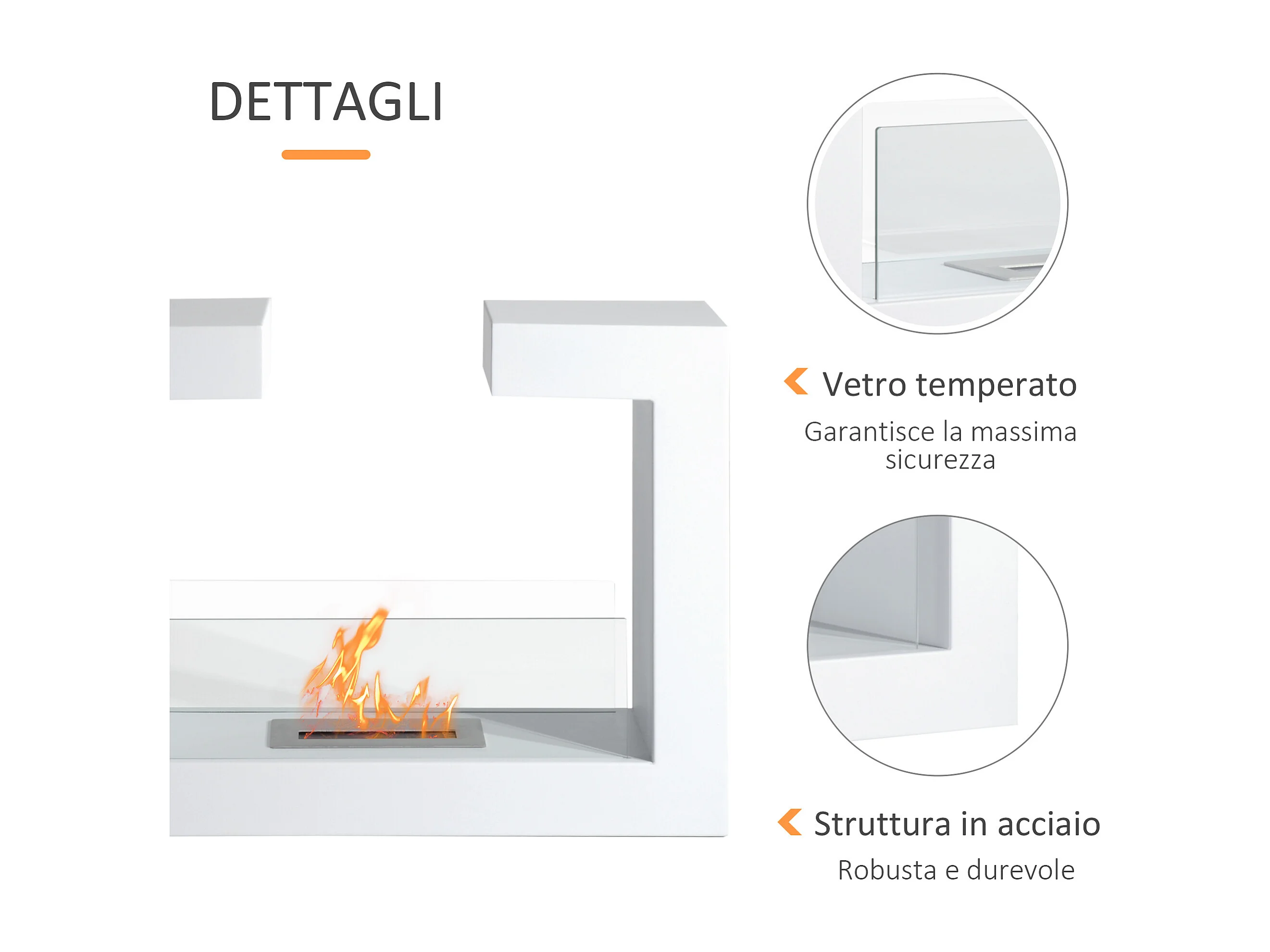 Camino a Bioetanolo Arena, Capacità 4,5 lt Made in Italy, 100x40x40h cm Bianco