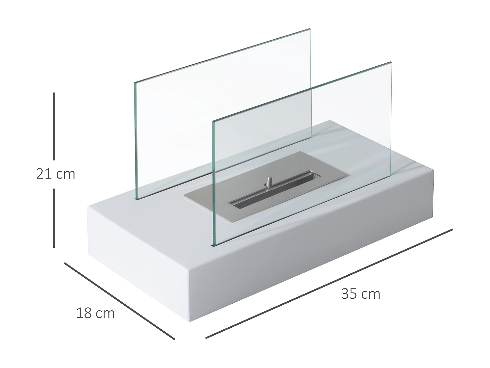 Easycomfort Camino A Bioetanolo Da Tavolo 830 W Bruciatori Senza Residui Inodore In Acciaio Inox Con Vetro 35x18x21 Cm Bianco
