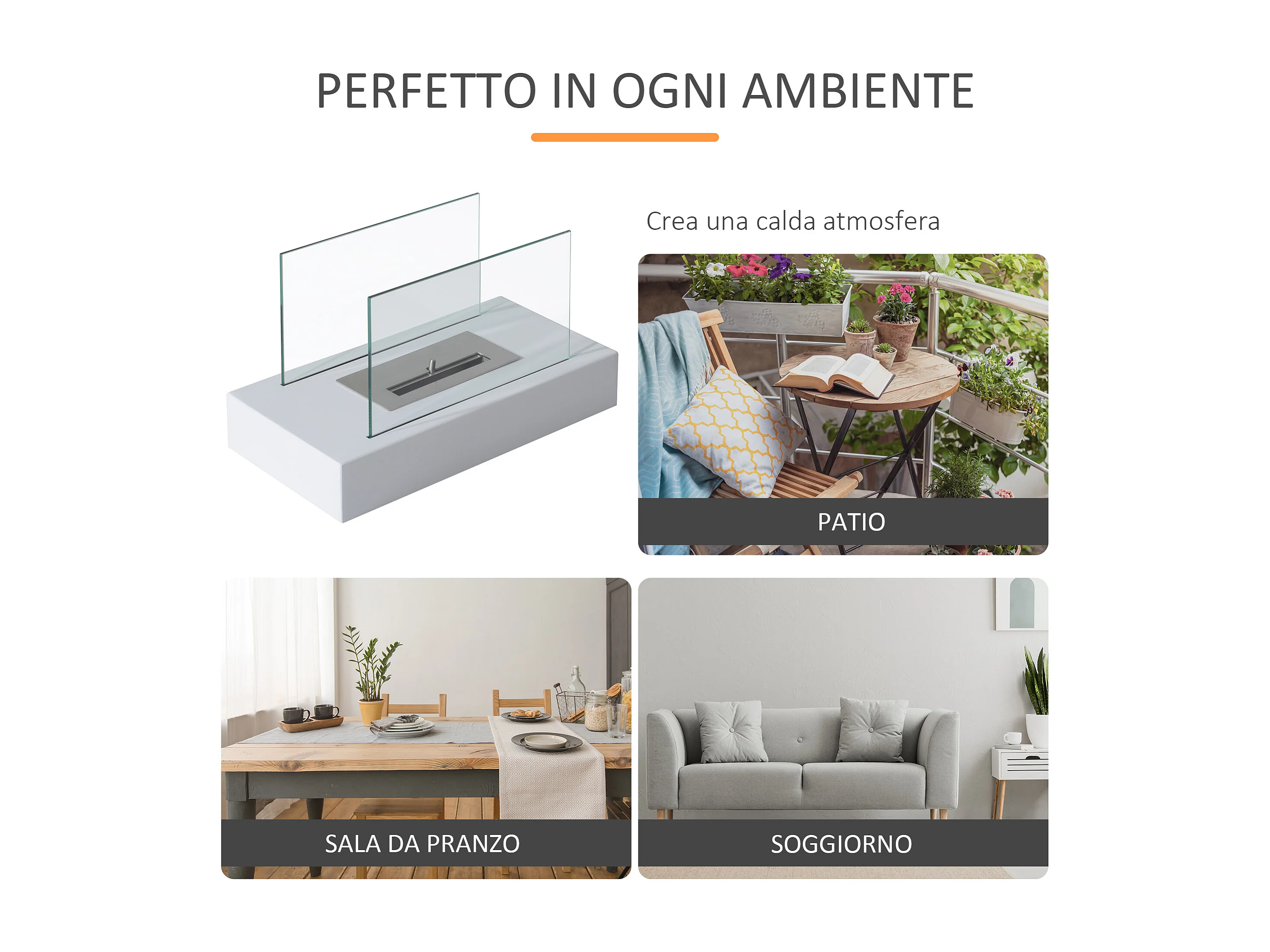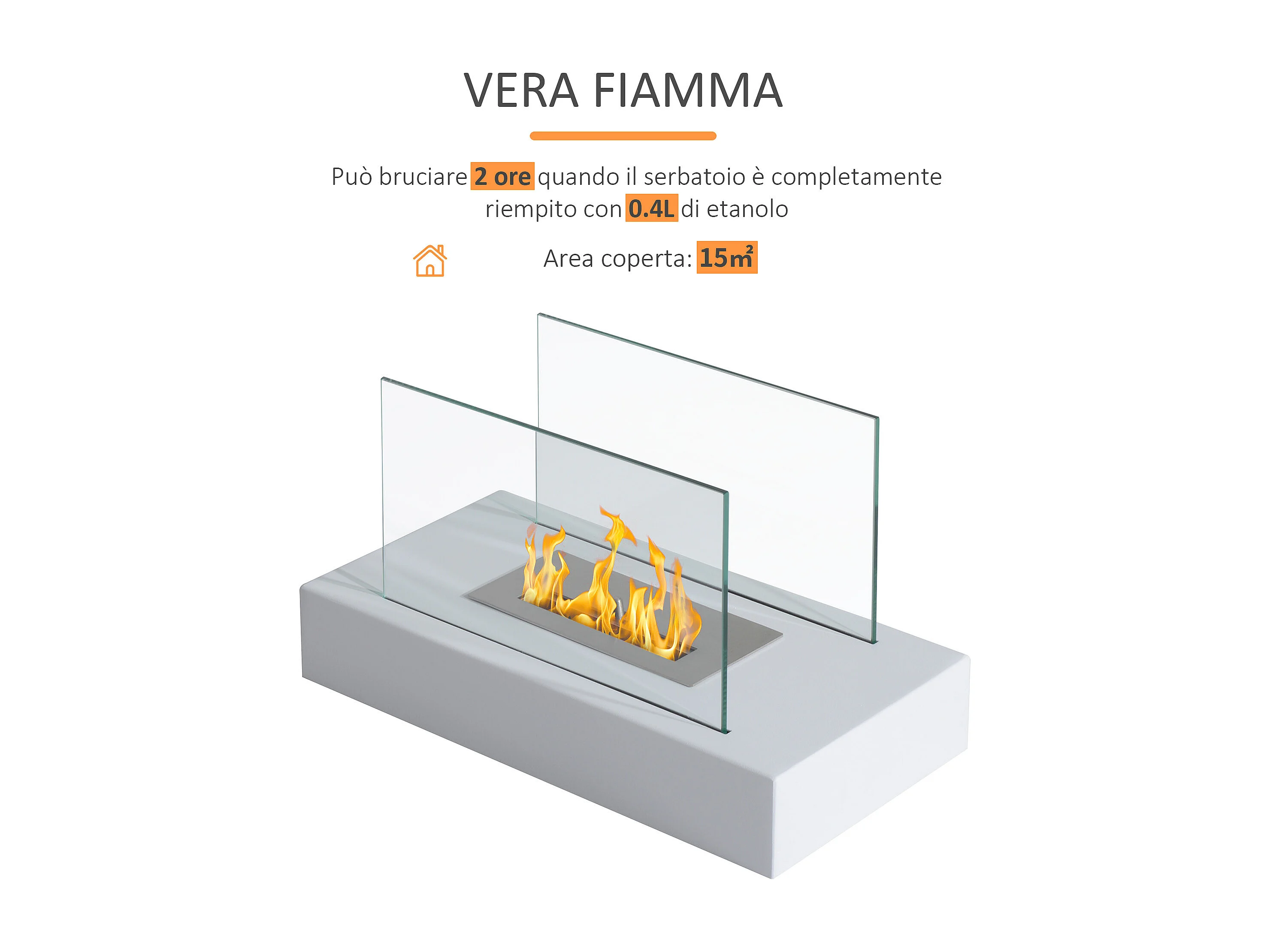 Camino a Bioetanolo Piovera, Capacità 1,8 lt Made in Italy, 110x63x102h cm Bianco