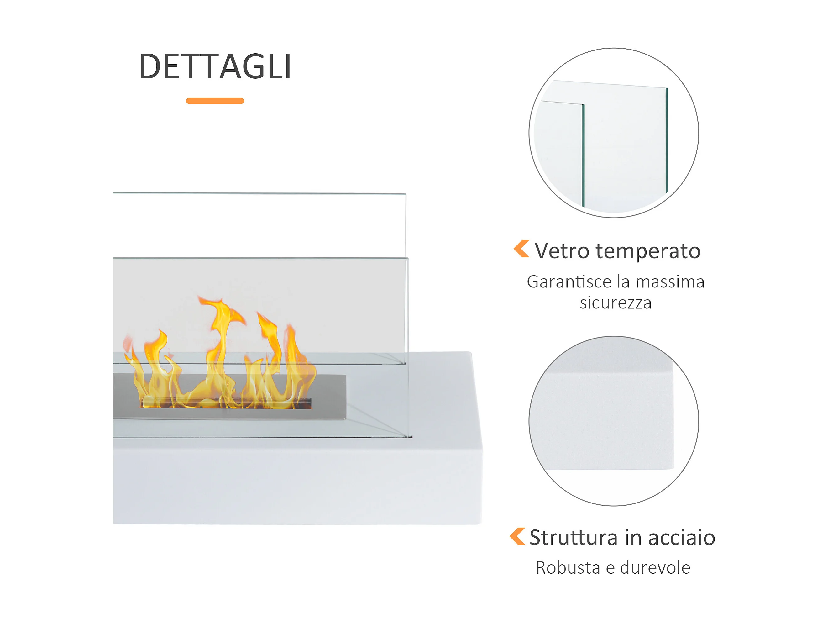 Camino a Bioetanolo Arenzano, Capacità 1,2 lt Made in Italy, 24x75x68h cm Bianco