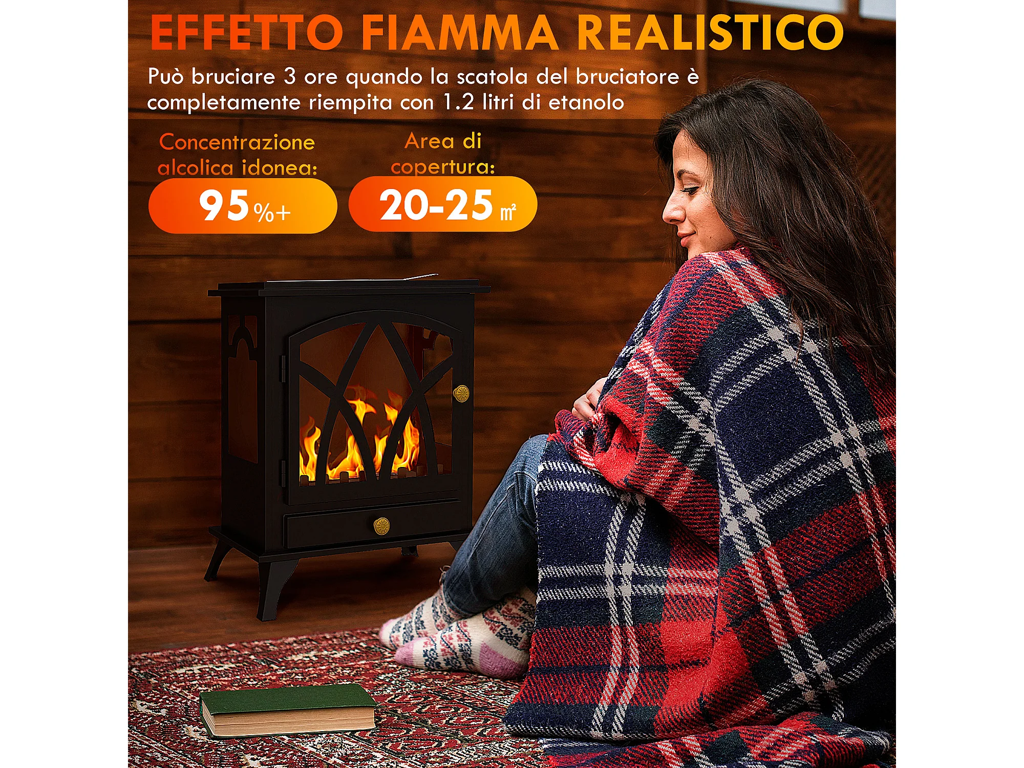 Camino bioetanolo da parete 3 serbatoi da 1l copertura 20m²