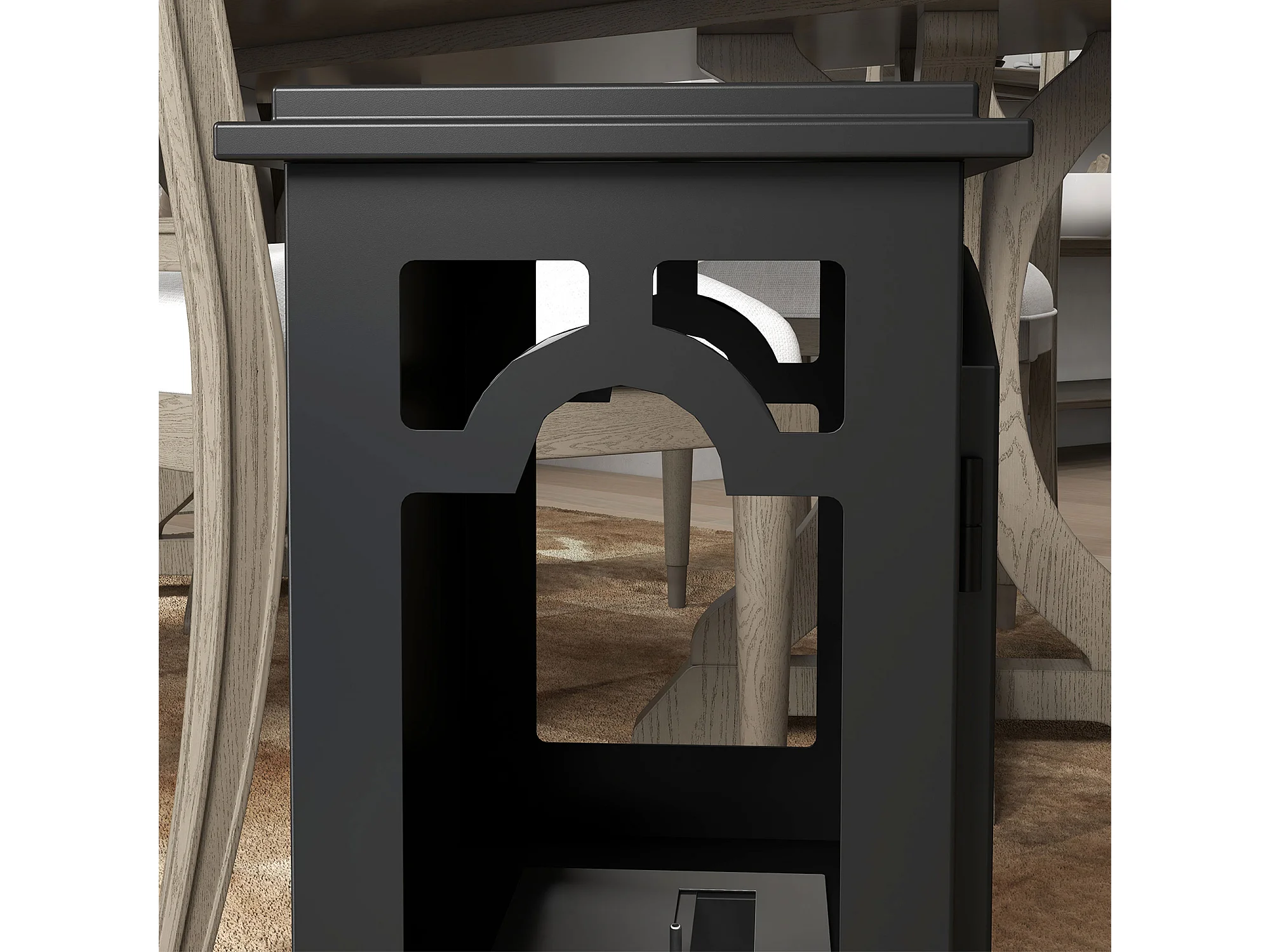 Legnaia da esterno in metallo e tetto in policarbonato nero