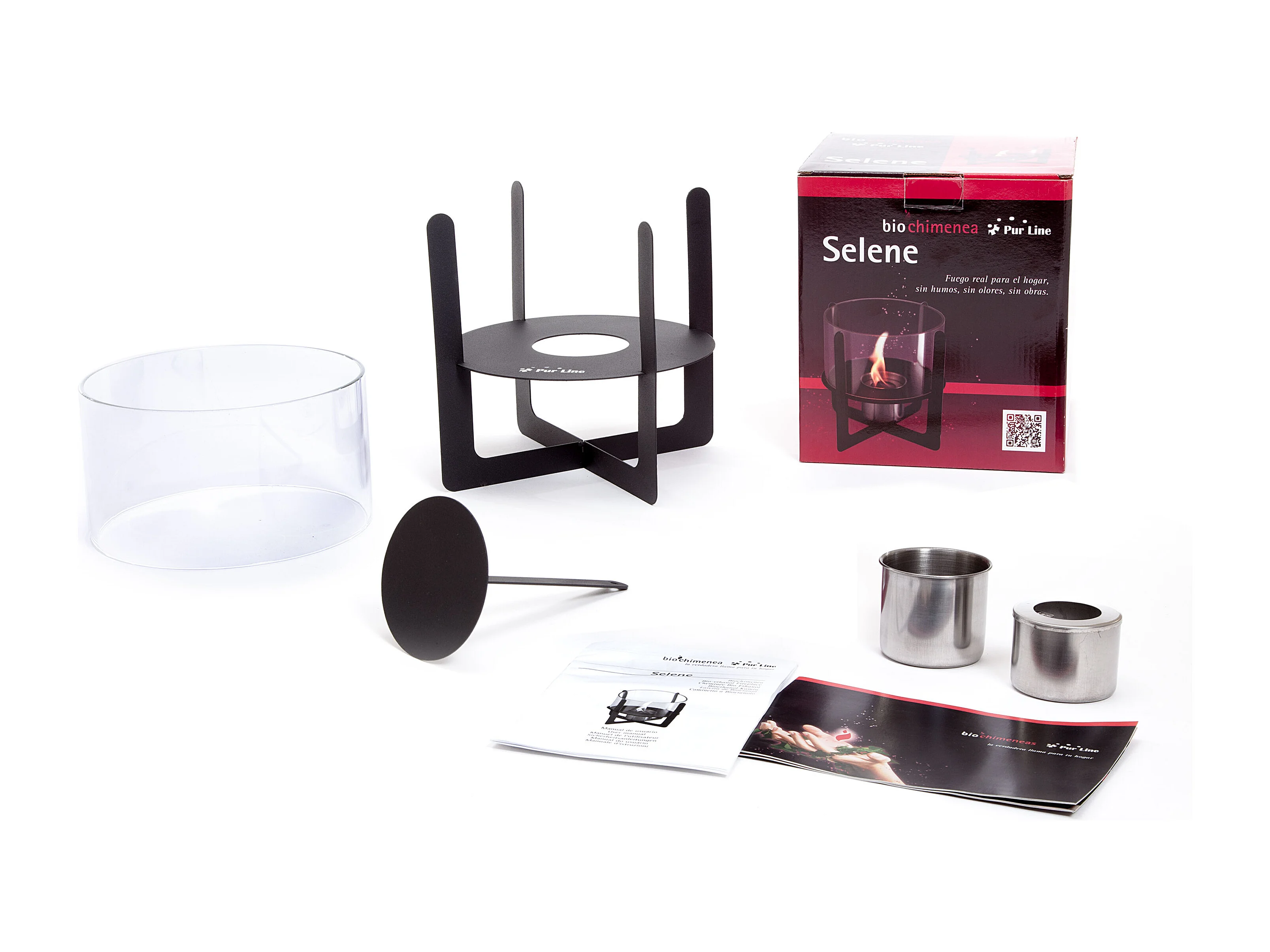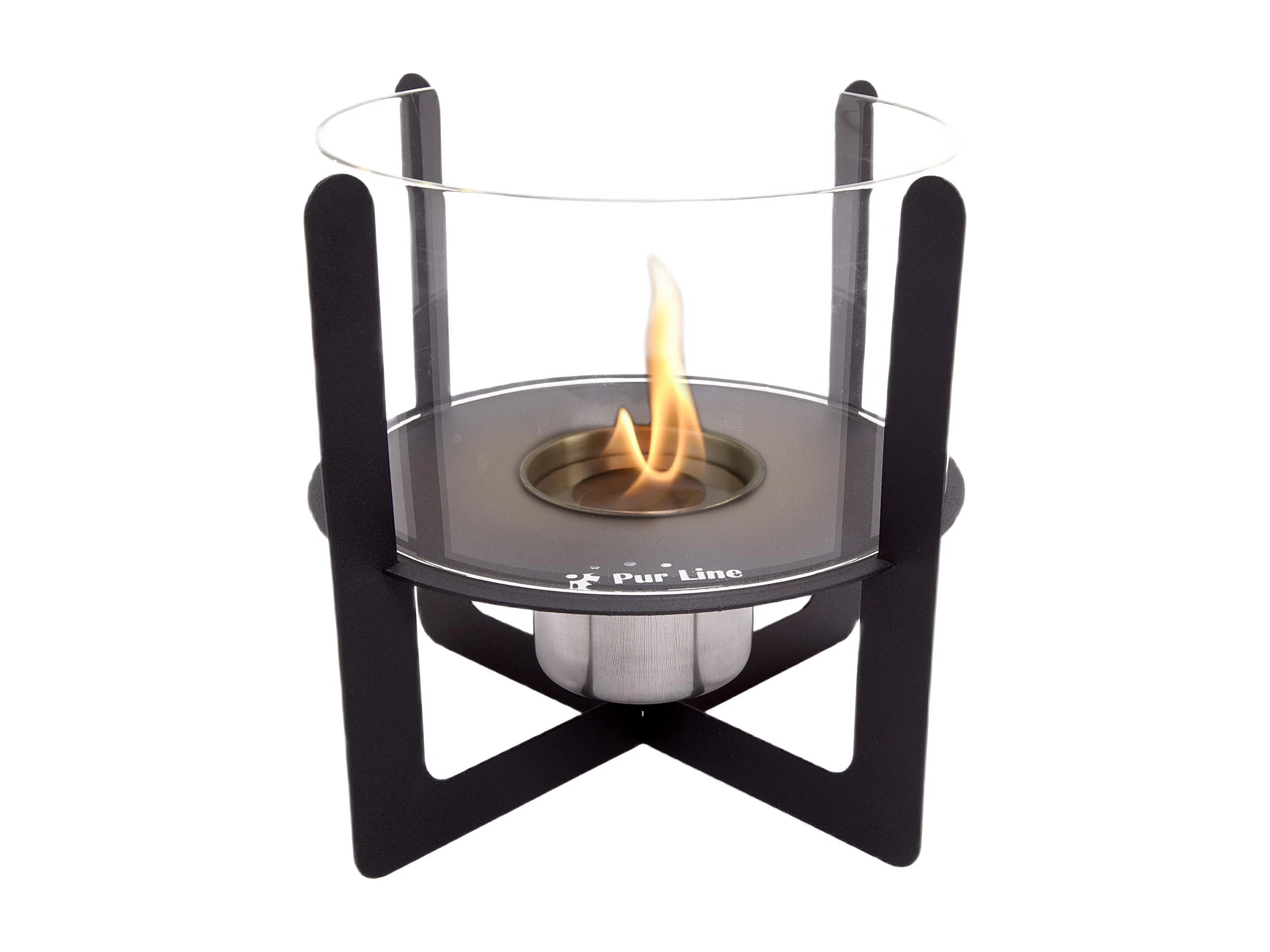 Camino a etanolo da tavolo con vetro temperato cilindrico