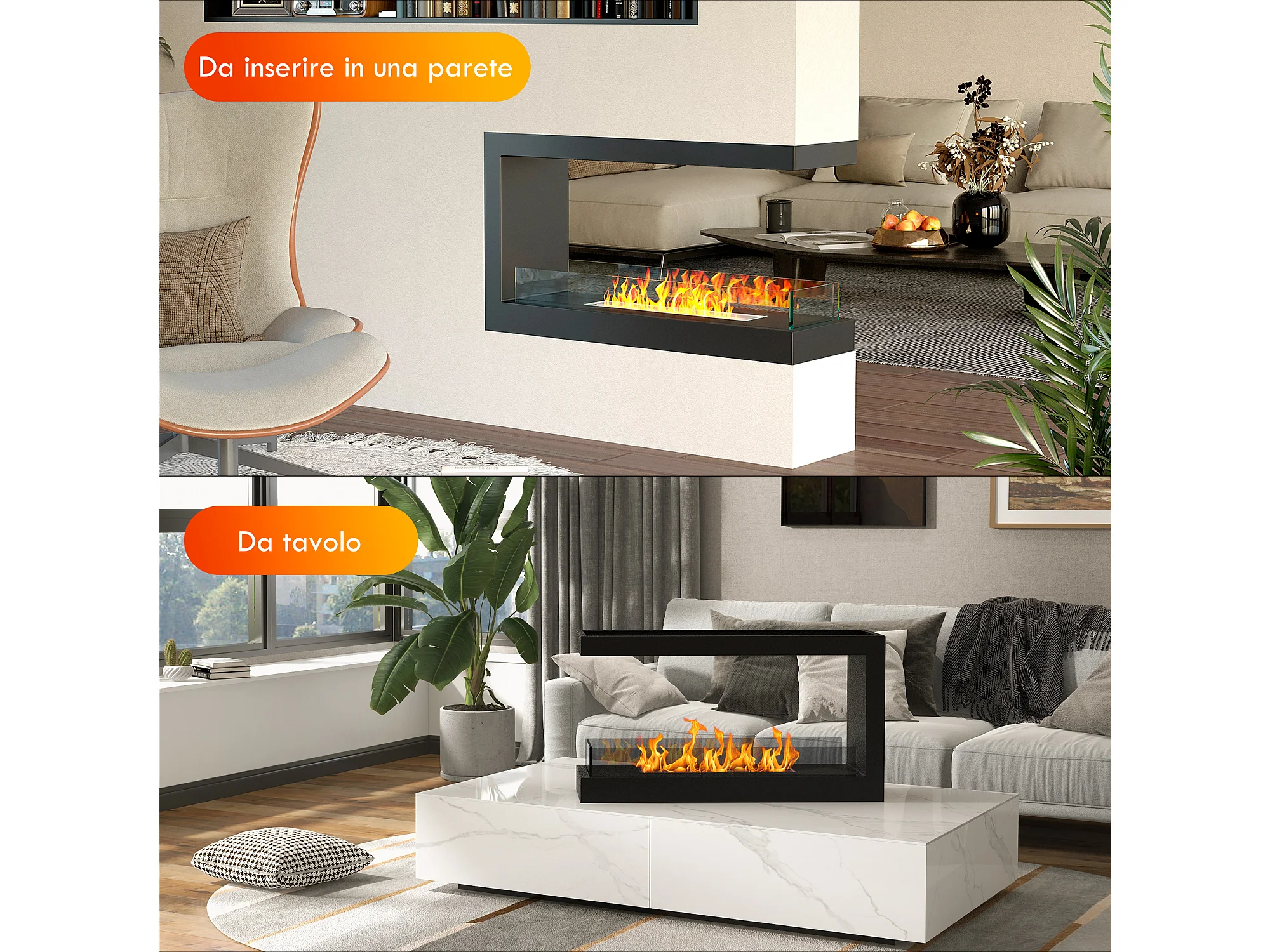 Camino bioetanolo a 3 lati con bruciatore 2.4l e durata 4 ore