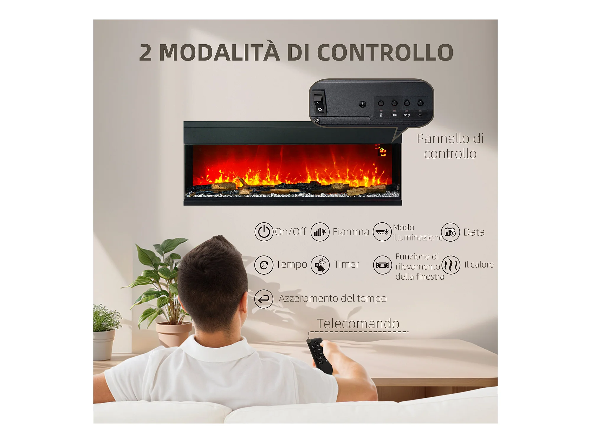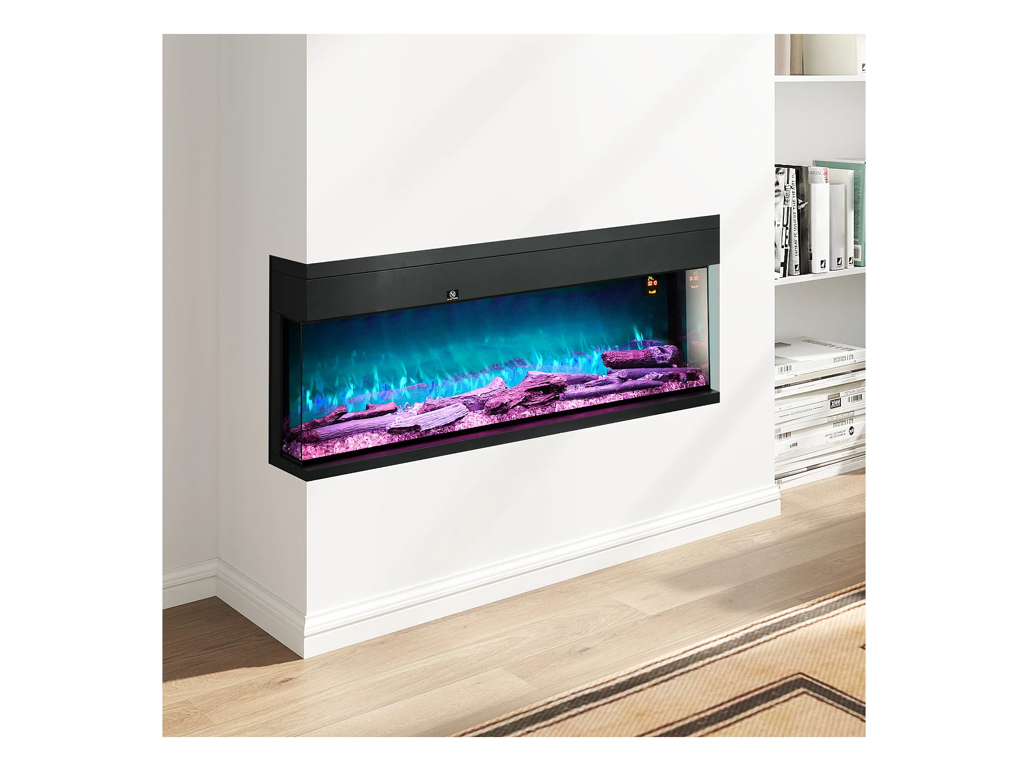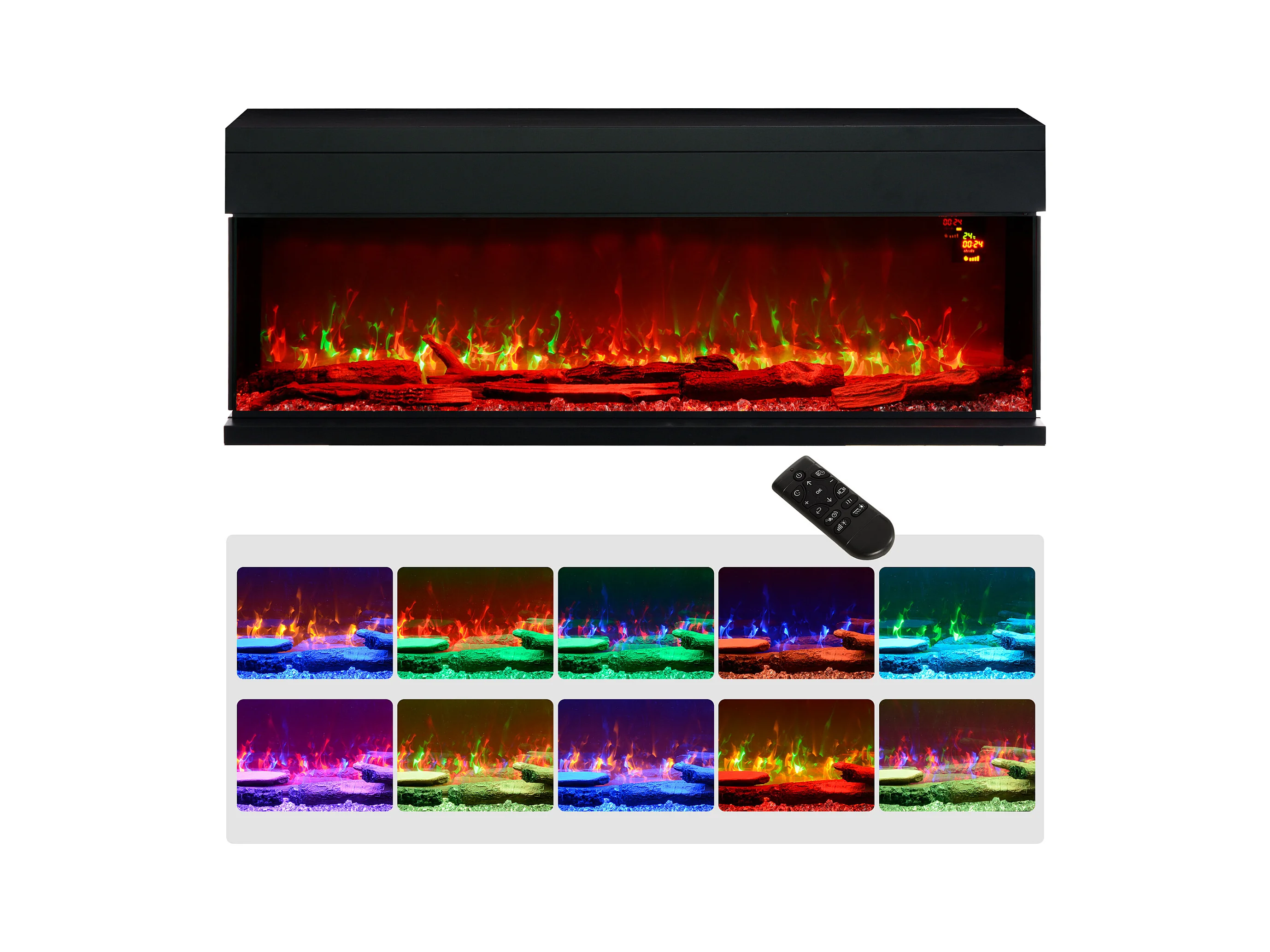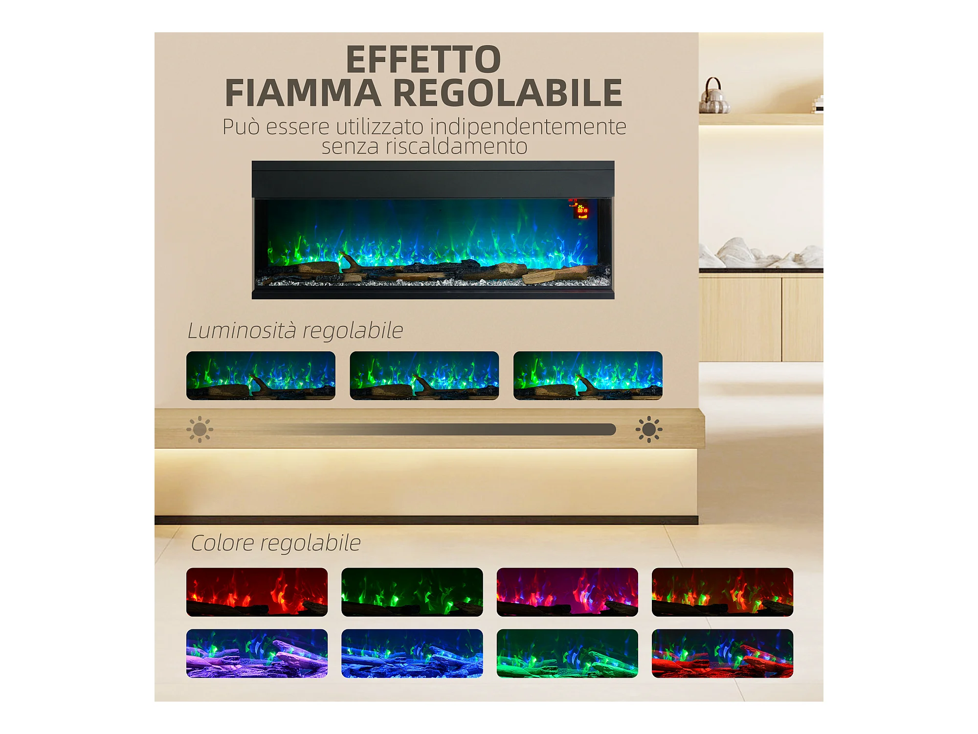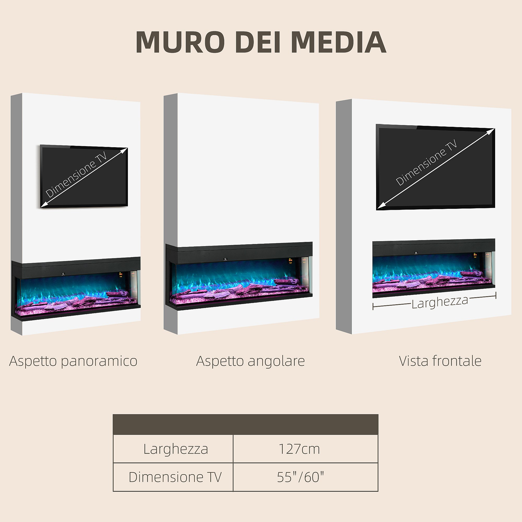 Camino elettrico a incasso e parete 1800W con fiamme colorate