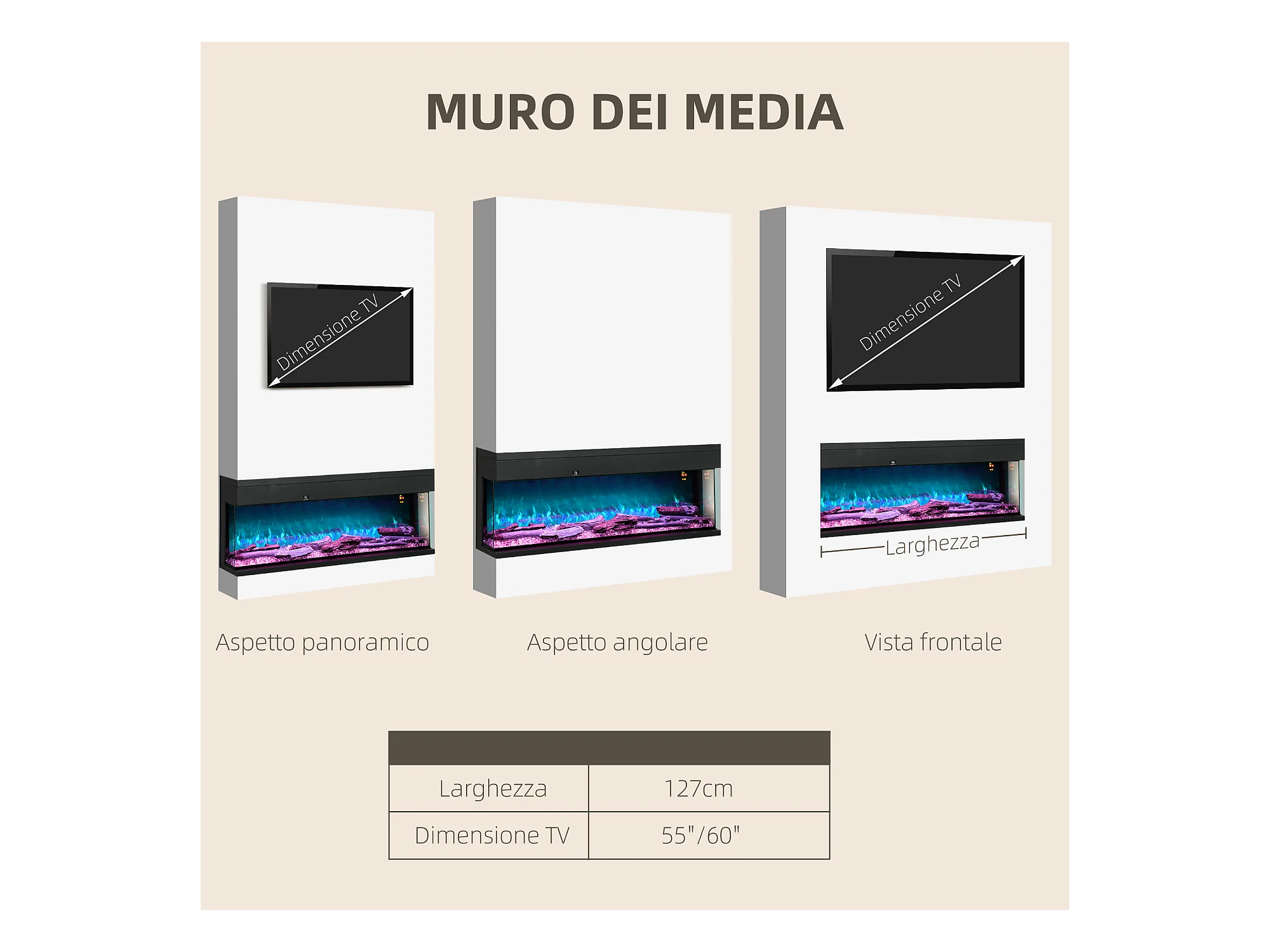 Camino elettrico con cornice effetto fiamma 3d realistico 3 modalità
