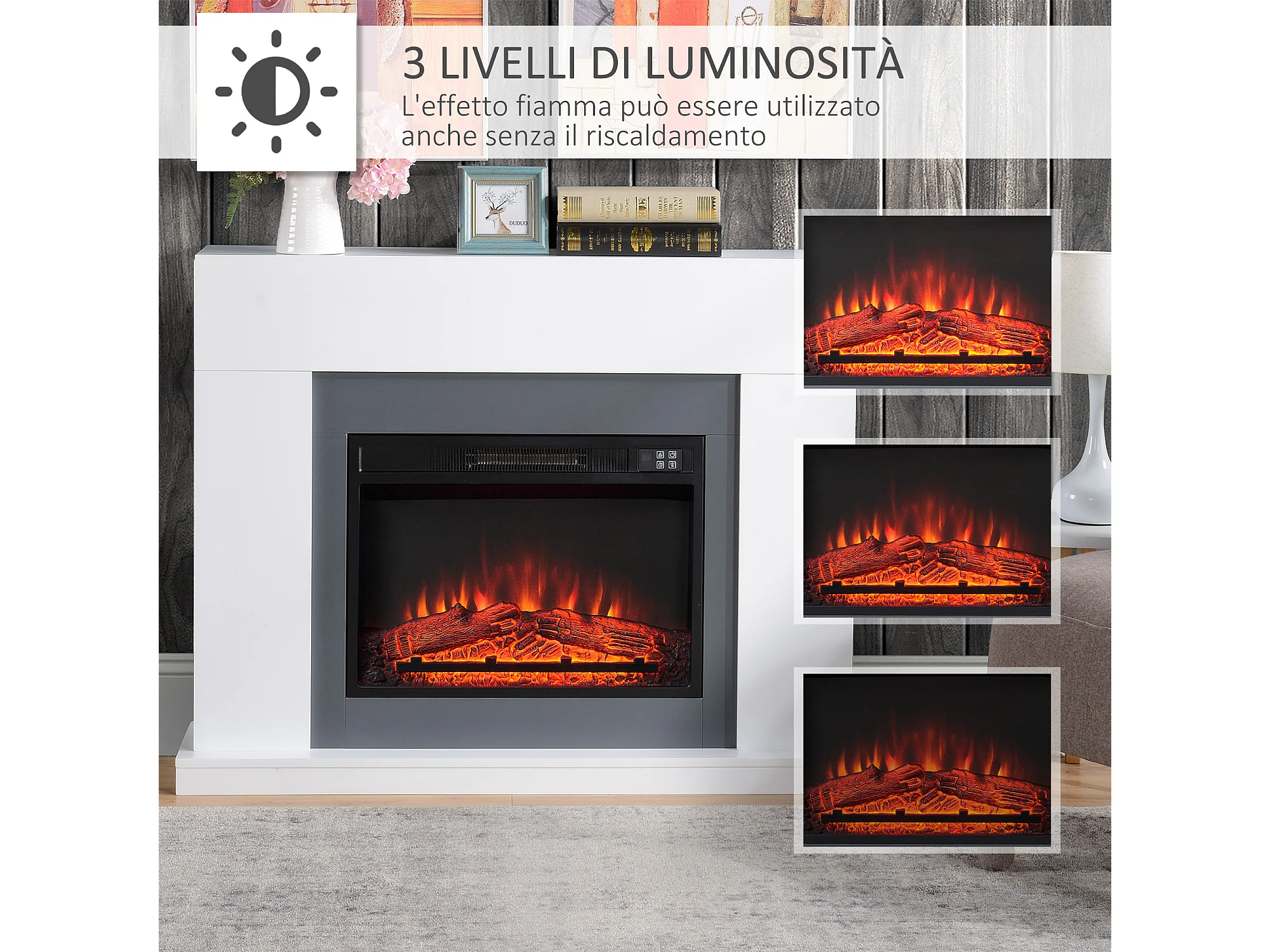 Camino elettrico a parete effetto fiamma copertura 37m² bianco