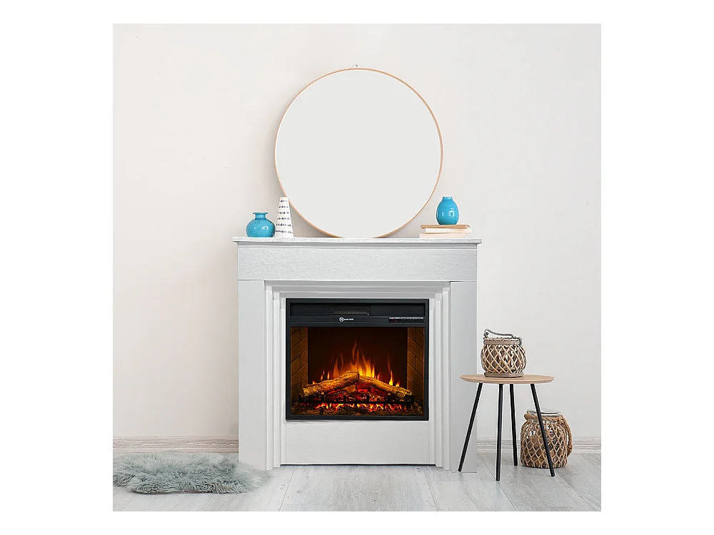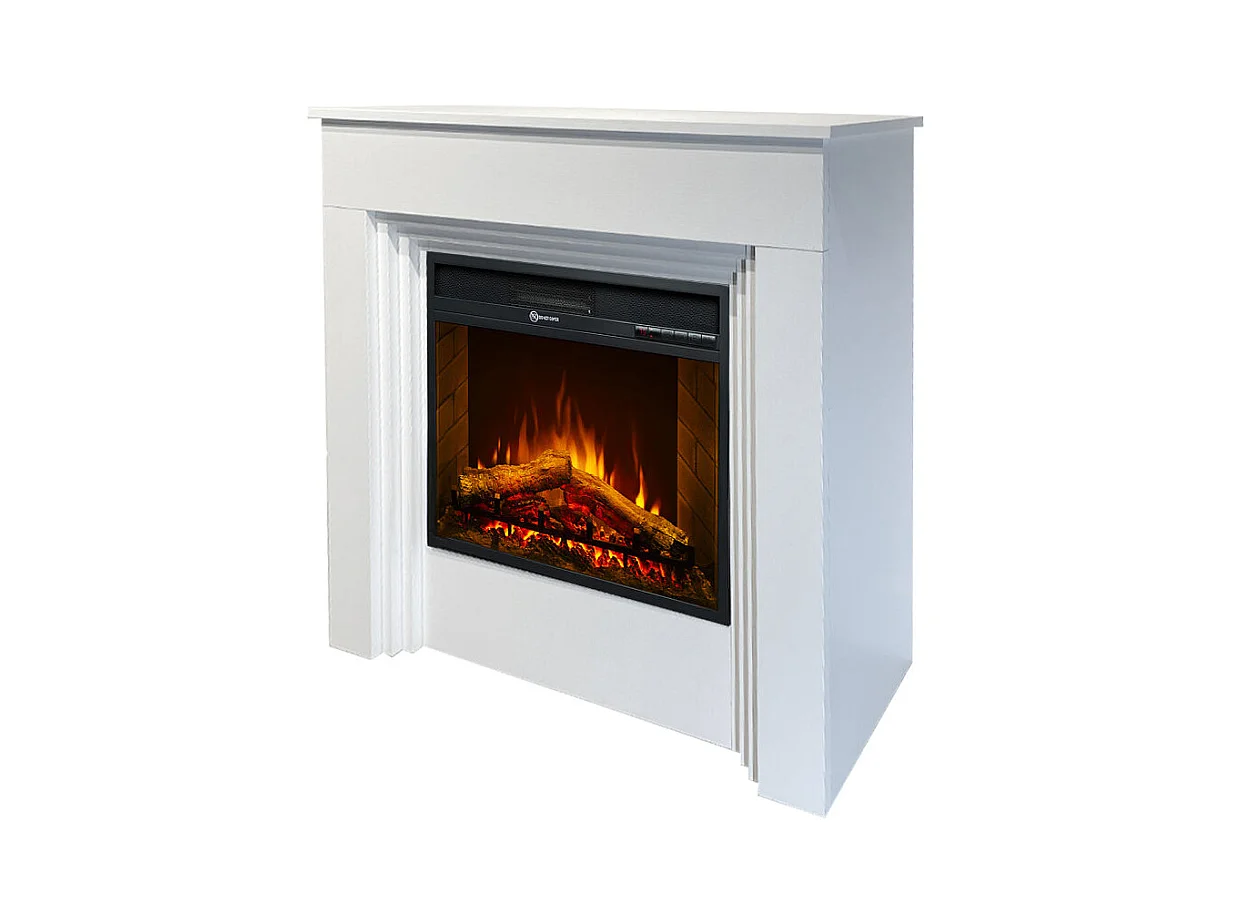 Camino elettrico caminetto da terra Stoccolma in legno bianco L75xP28xH70 cm
