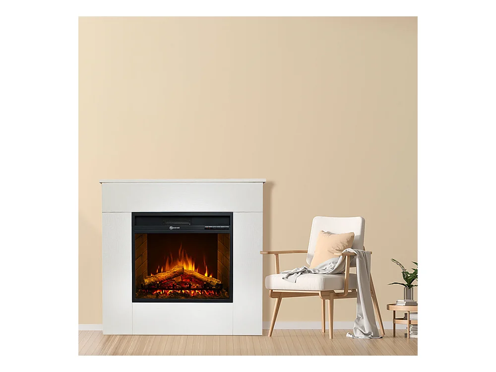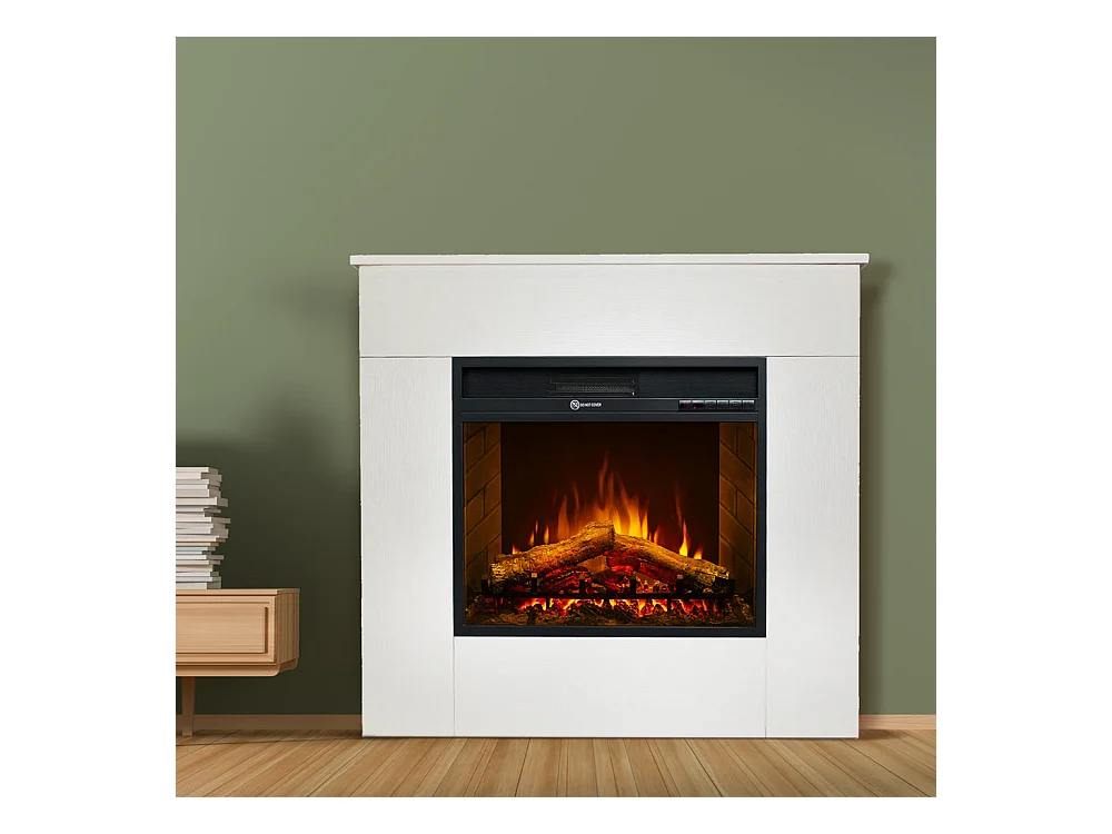 Camino elettrico caminetto da terra Stoccolma in legno bianco L75xP28xH70 cm