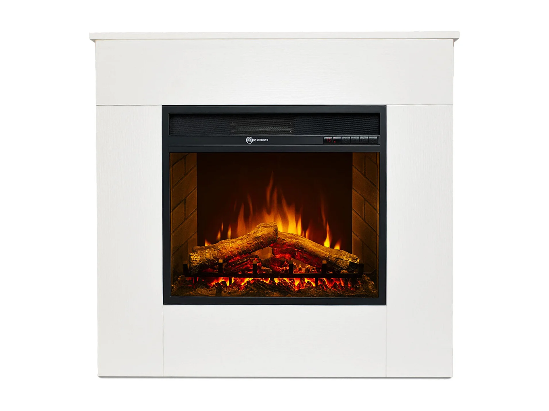 Camino elettrico caminetto da terra in legno bianco Made in Italy MICHELANGELO 96x36x90h