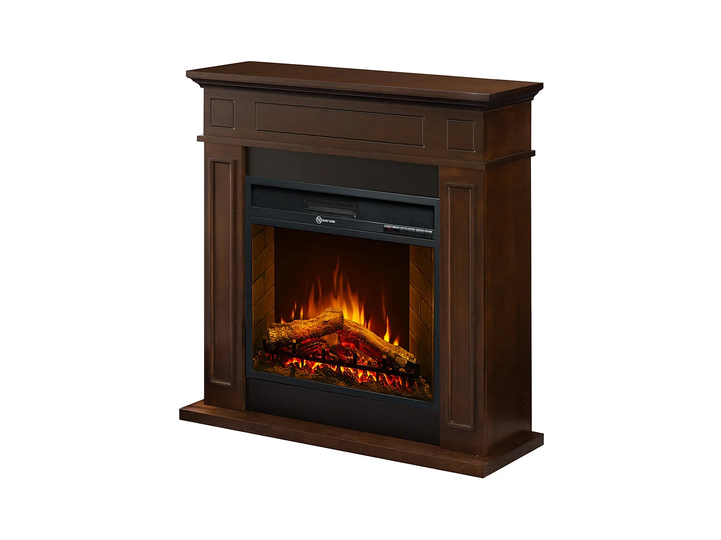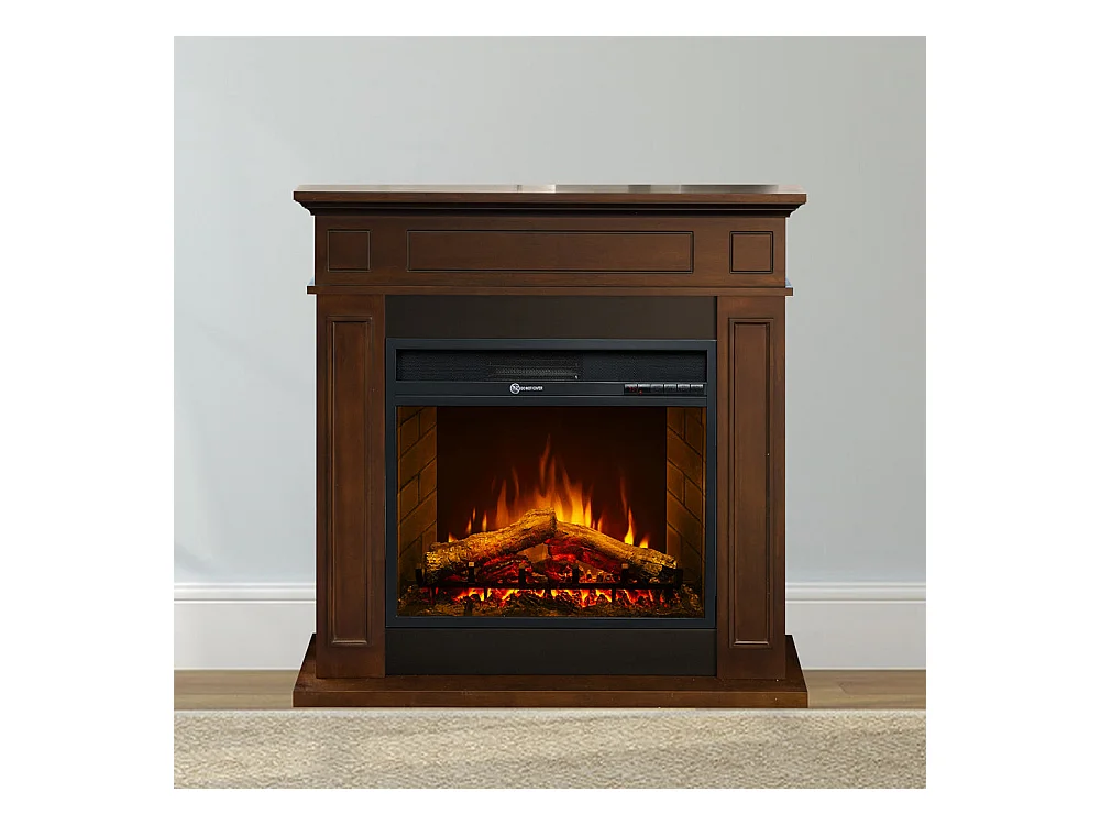 Camino elettrico caminetto da terra JEFFERSON in legno Noce L 89,5 x H90,5 x P28