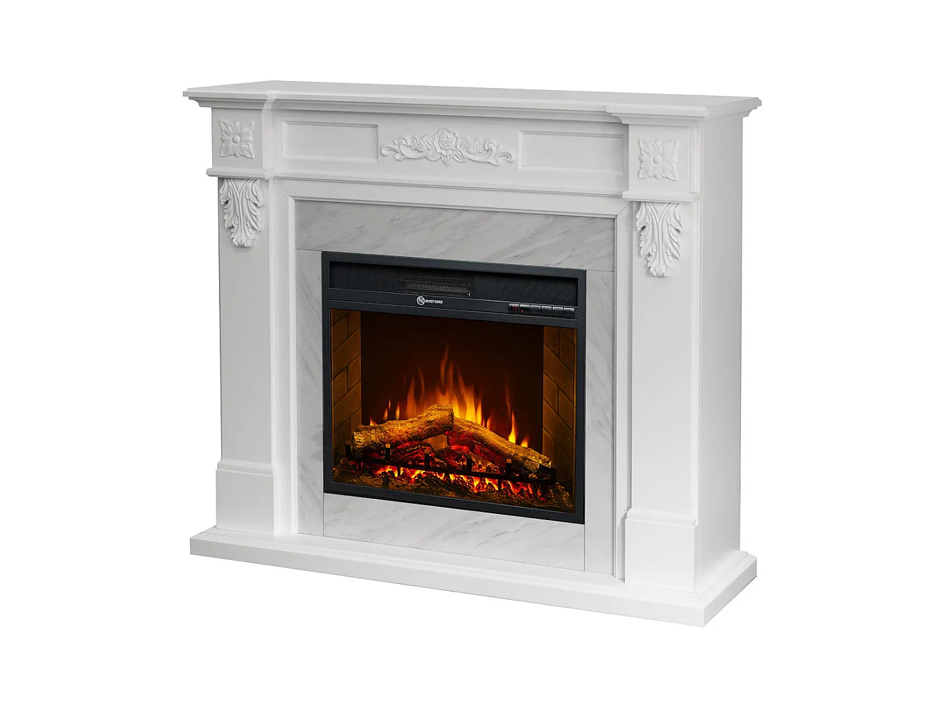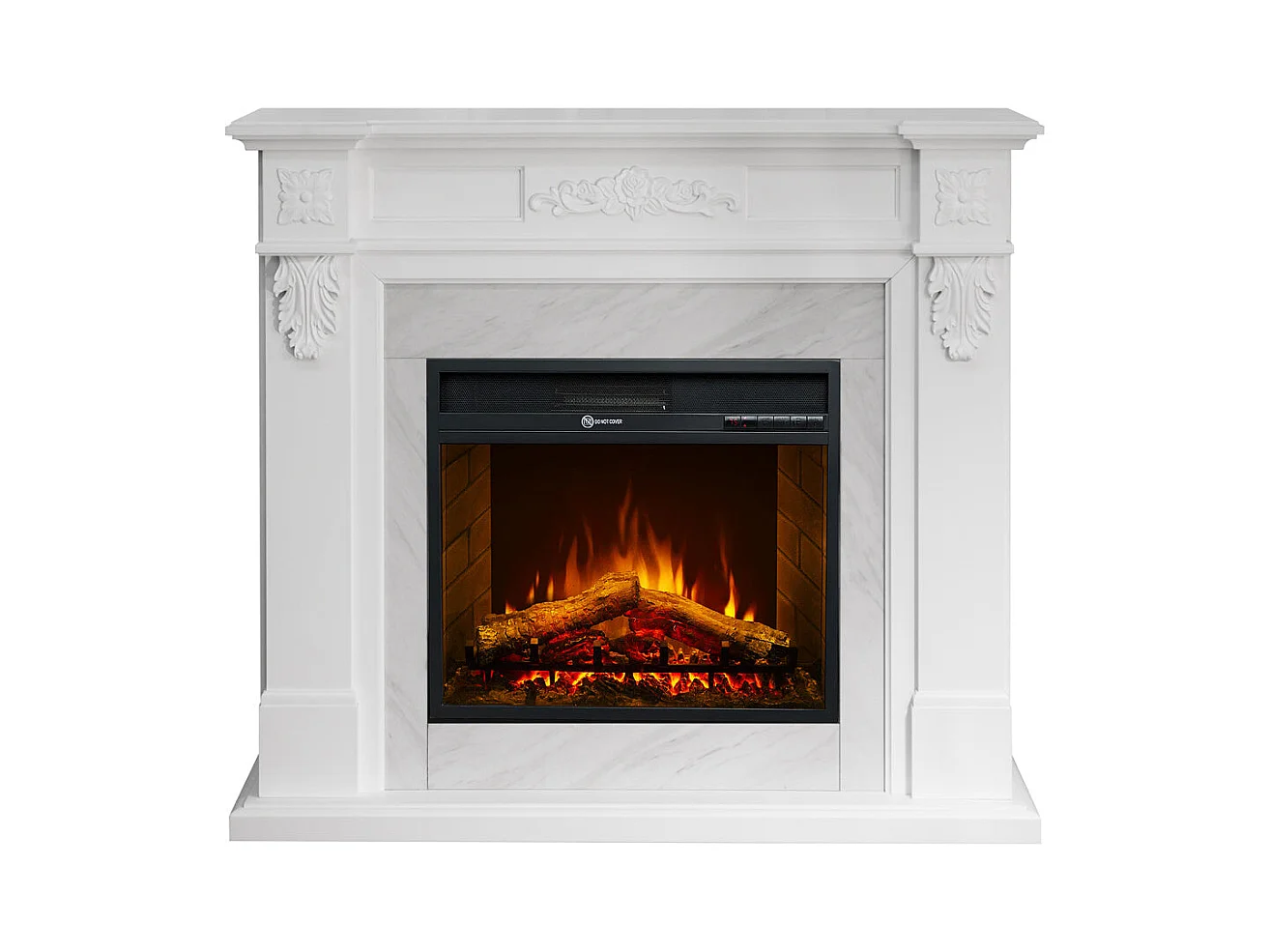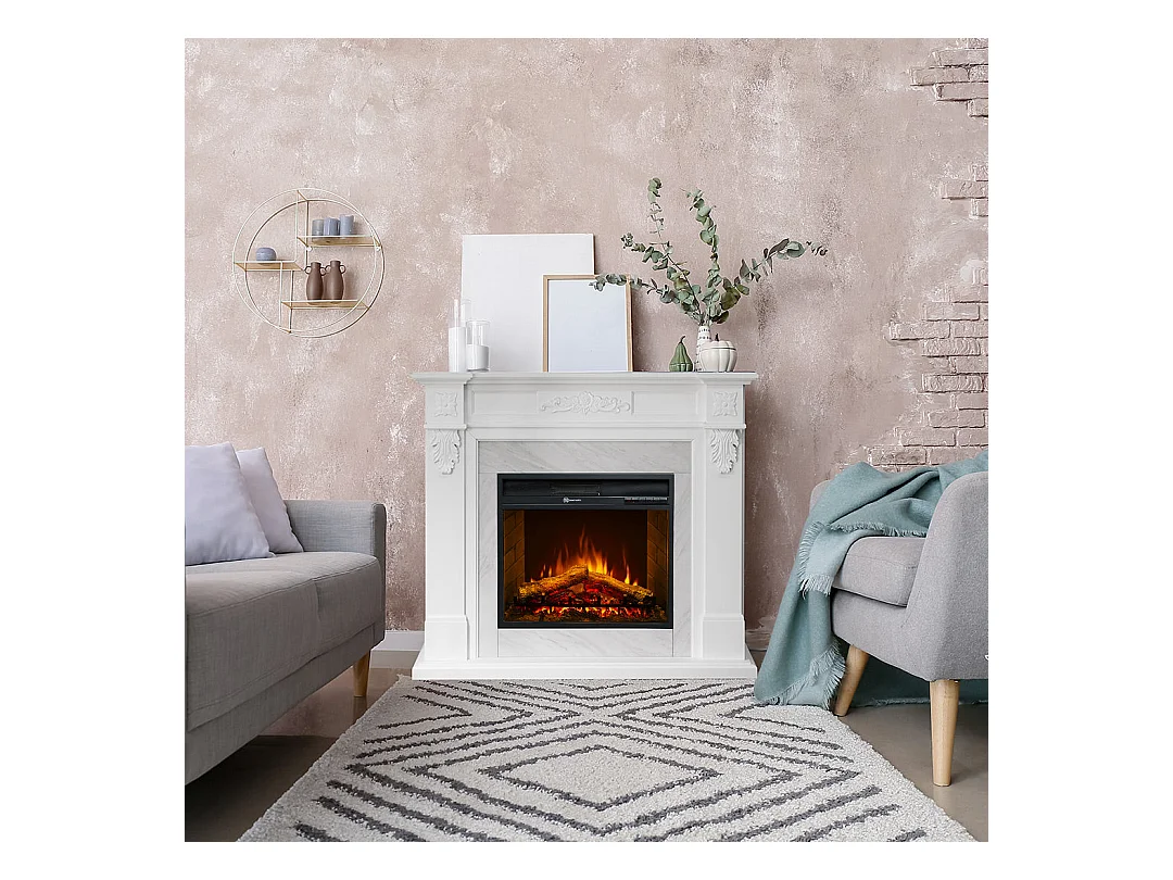 Camino elettrico caminetto da terra TRUMAN Bianco effetto marmo L121 x P38 x H108