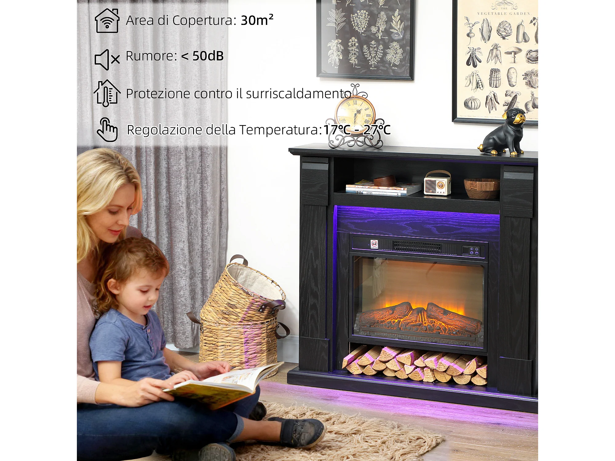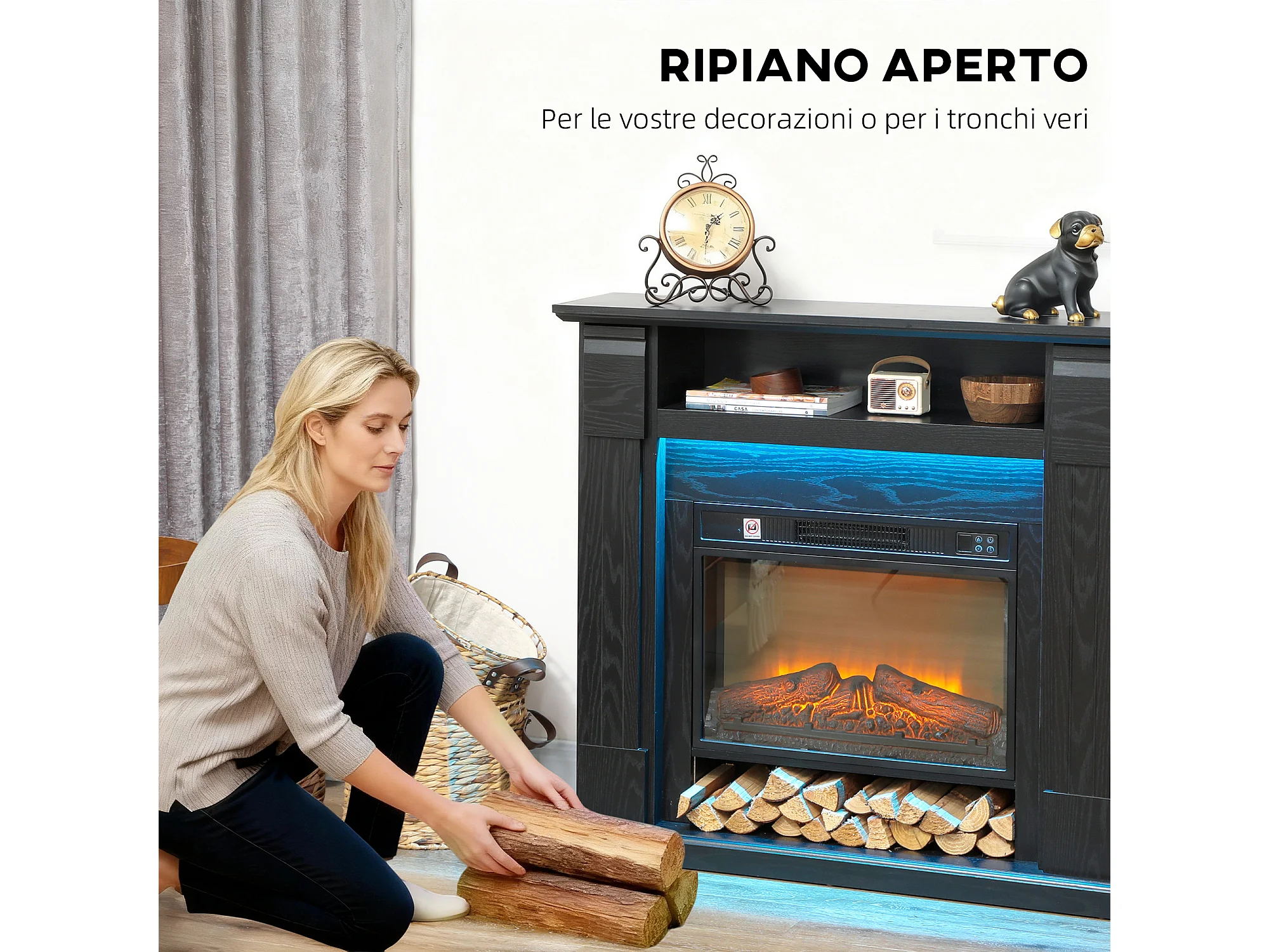 Camino elettrico con cornice effetto fiamma 3d realistico 3 modalità
