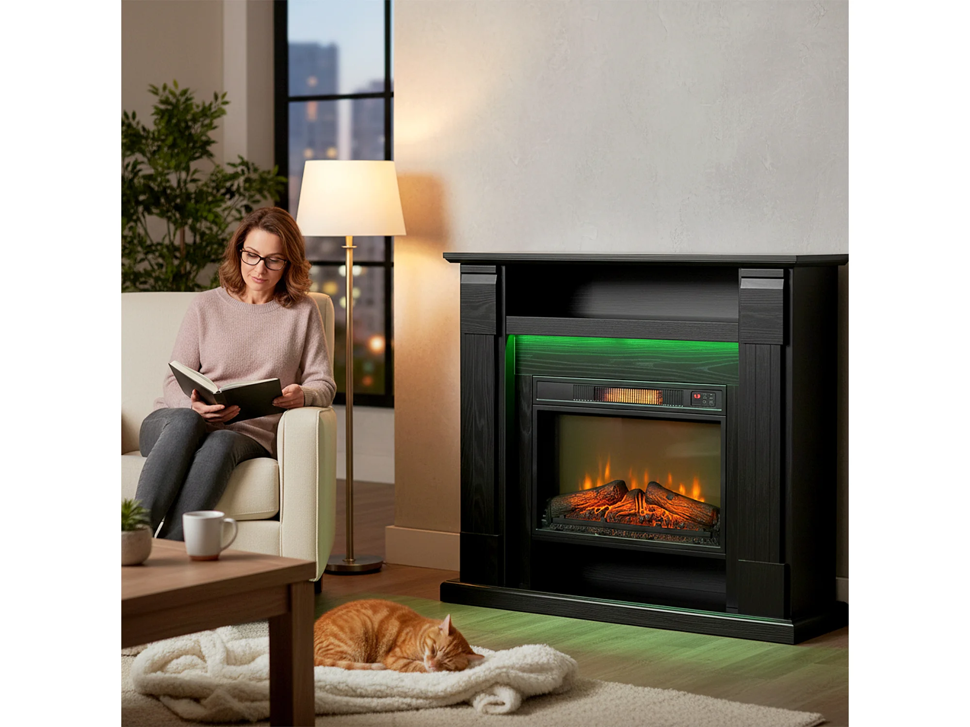 Caminetto da terra elettrico 1000W/2000W effetto fiamma con legna