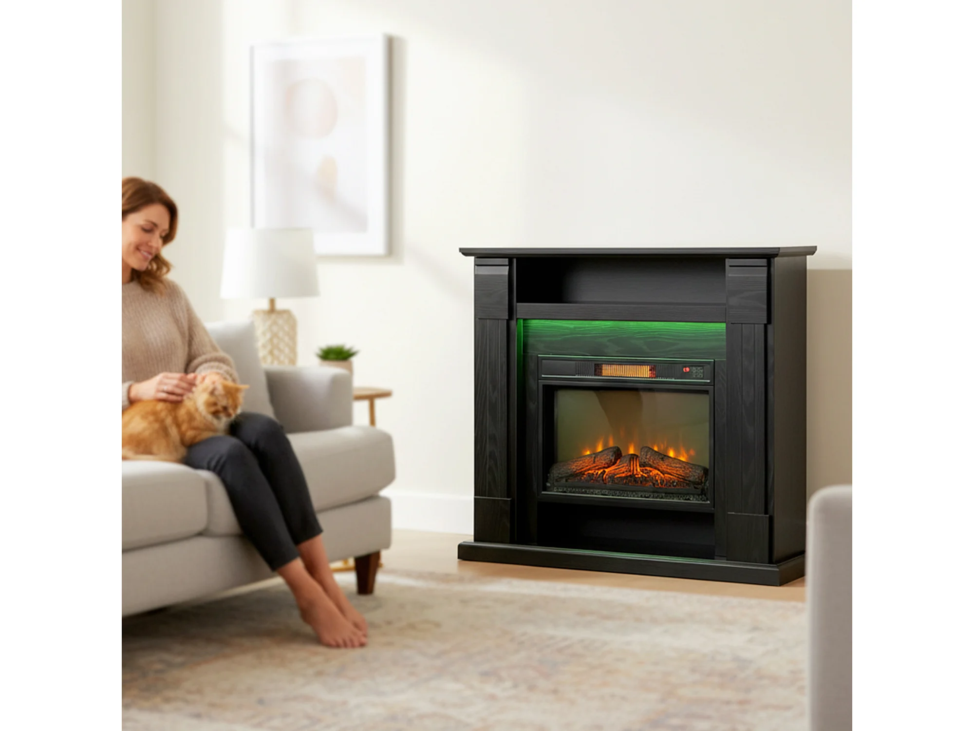 Easycomfort Camino Elettrico Con Effetto Fiamma Regolabile Potenza 900w/1800w, 36 X 25.5 X 41.5cm, Nero
