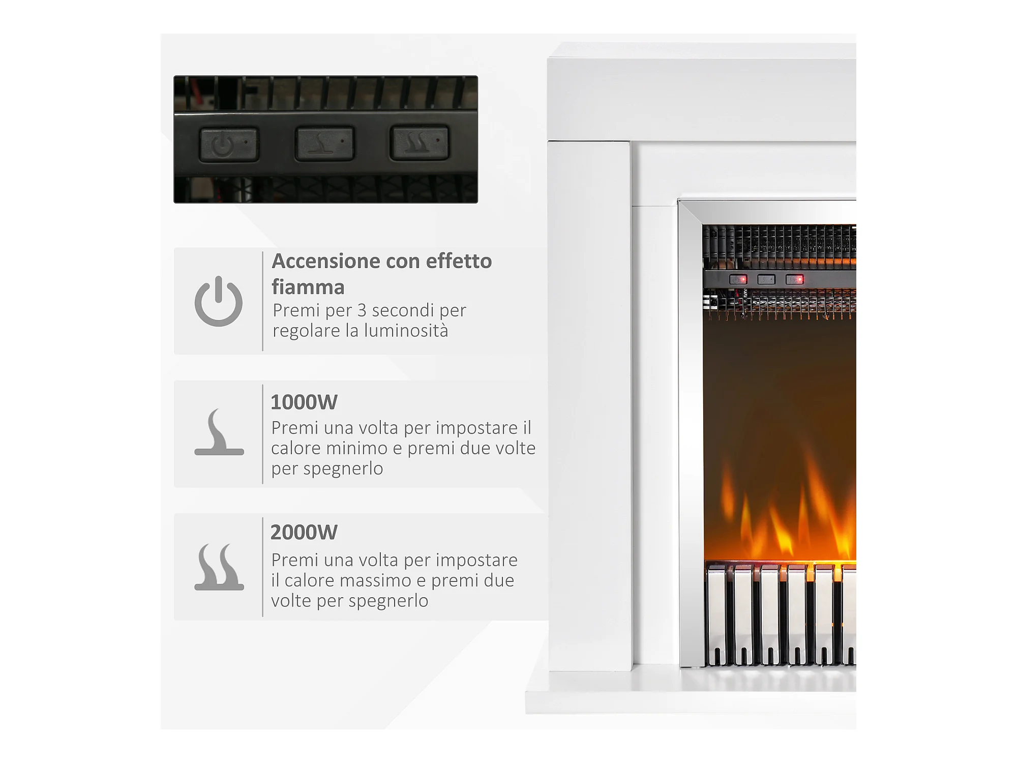 Camino elettrico con cornice effetto fiamma 3d realistico 3 modalità