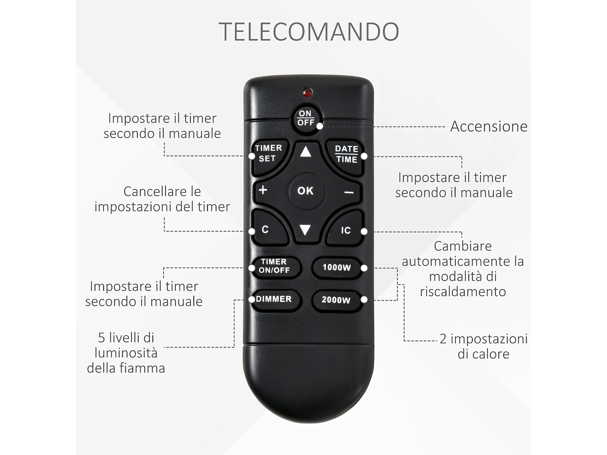 Caminetto da terra elettrico 1000W/2000W effetto fiamma con legna