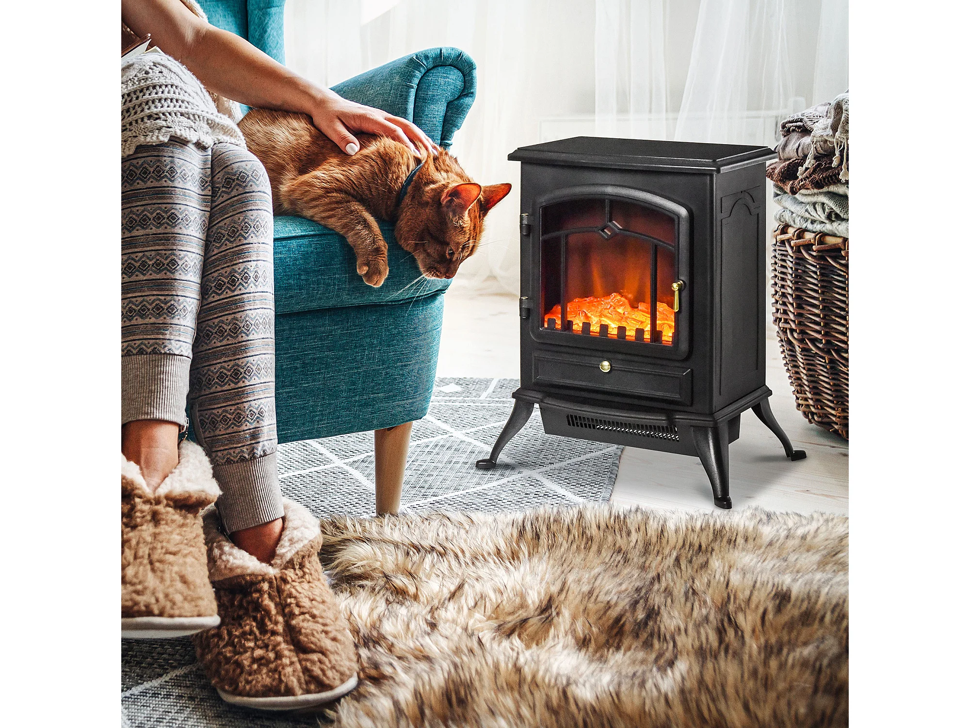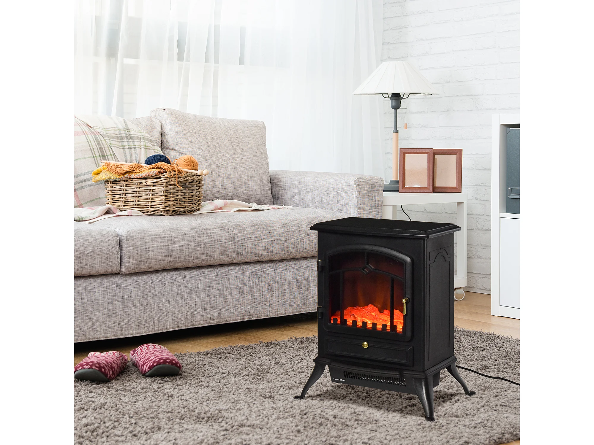 Caminetto da terra elettrico 1000W/2000W effetto fiamma con legna