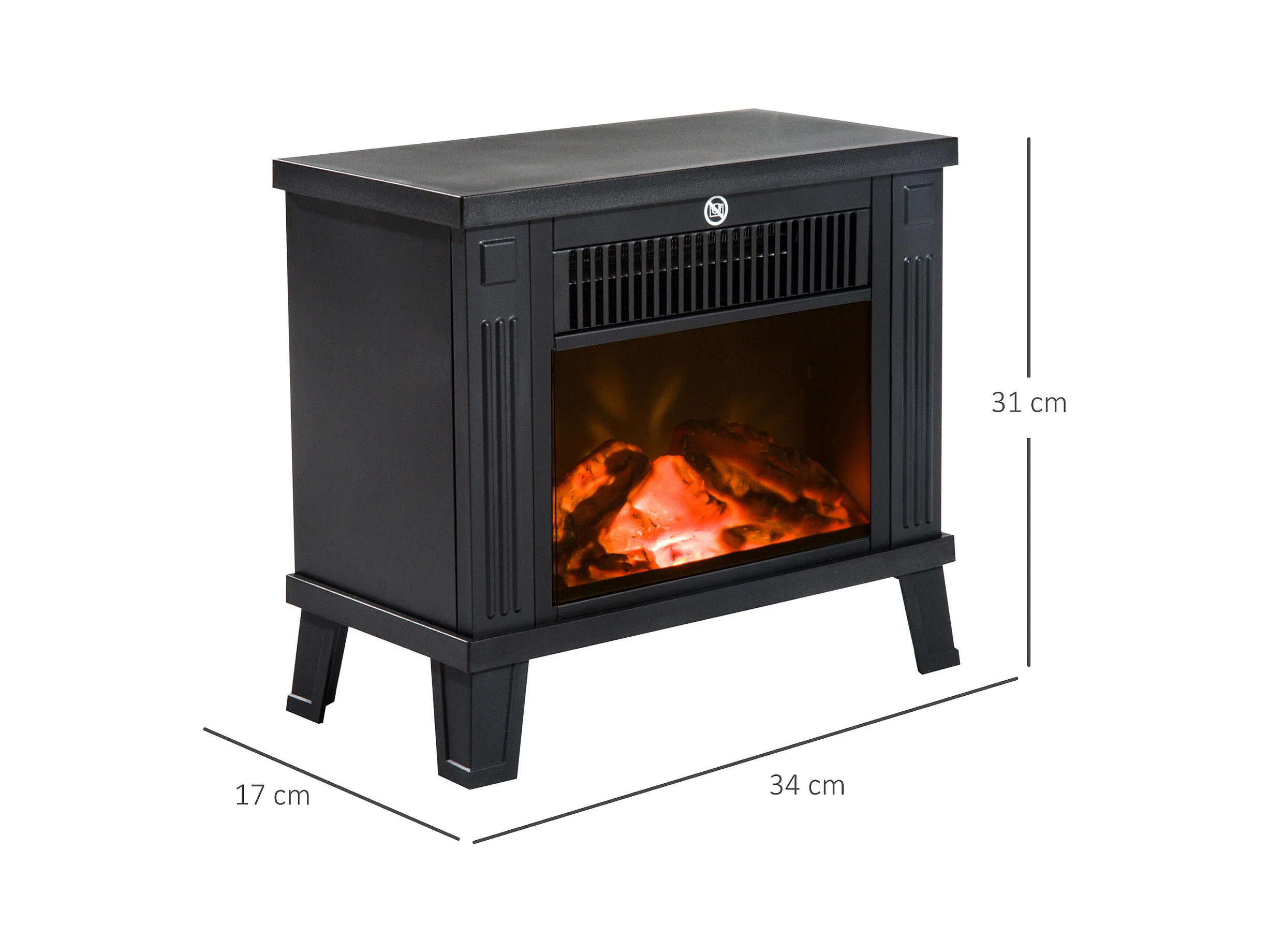 Easycomfort Camino Elettrico Da Terra Moderno Potenza 600w/1200w Con Effetto Fiamma 34 X 17 X 31cm Nero
