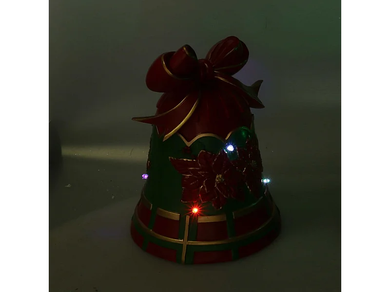 Campana resina fiori verde e rosso con led cm 20x19h25