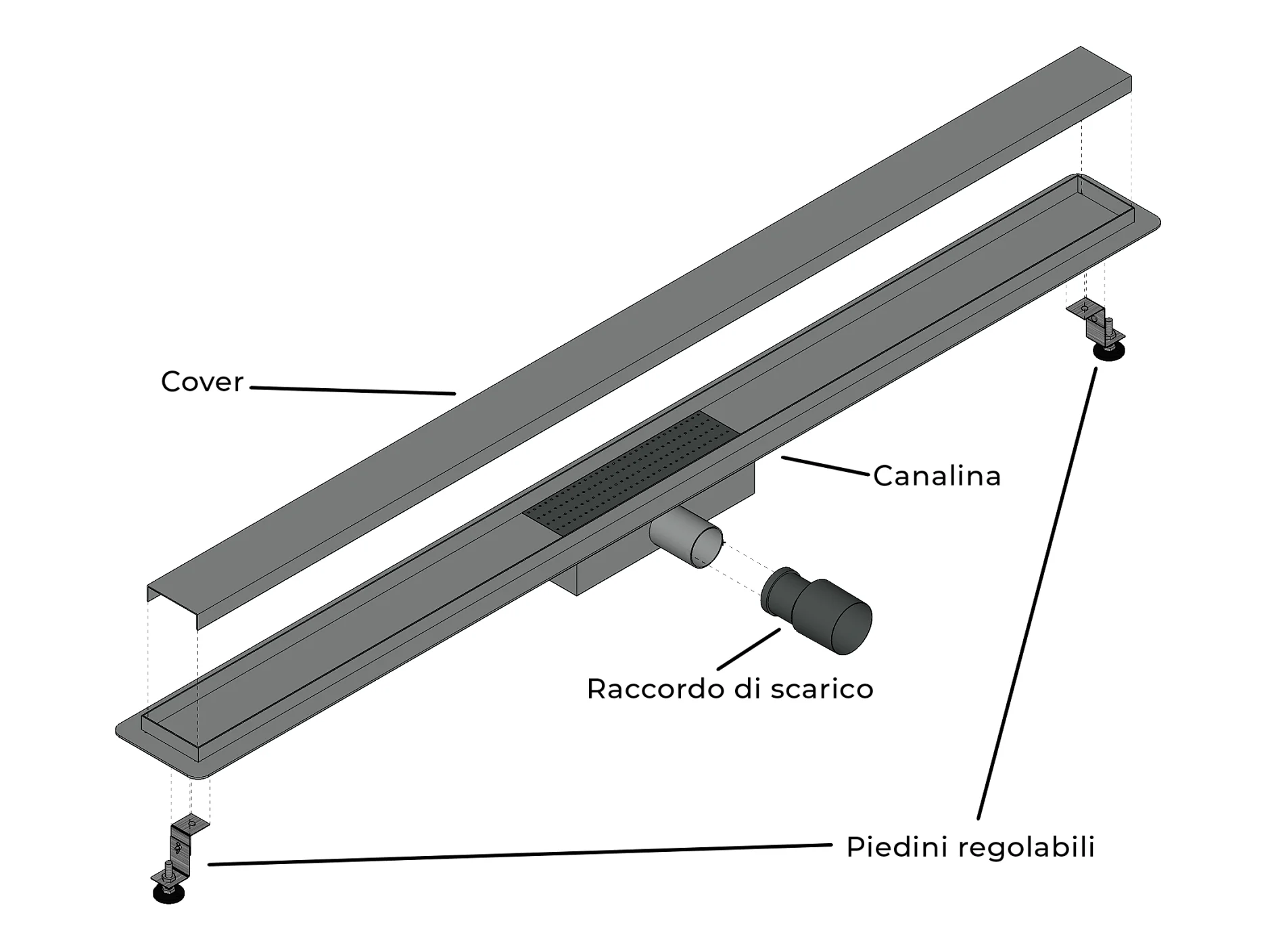 Canalina Di Scarico Per Piatto Doccia A Pavimento Acciaio Inox Modello Linea 60