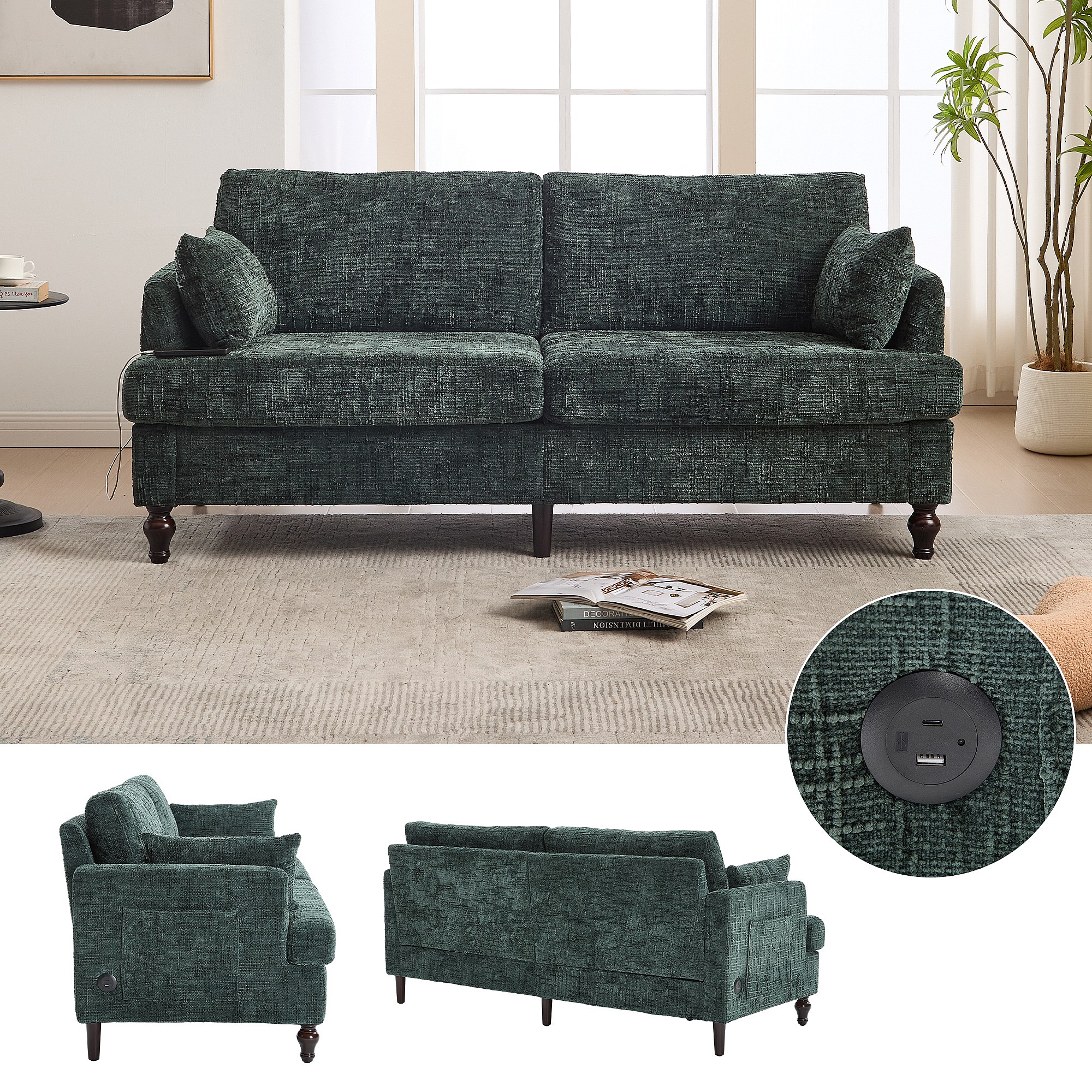 Divano 2 posti per soggiorno soggiorno interno casa tessuto verde 02_0018851