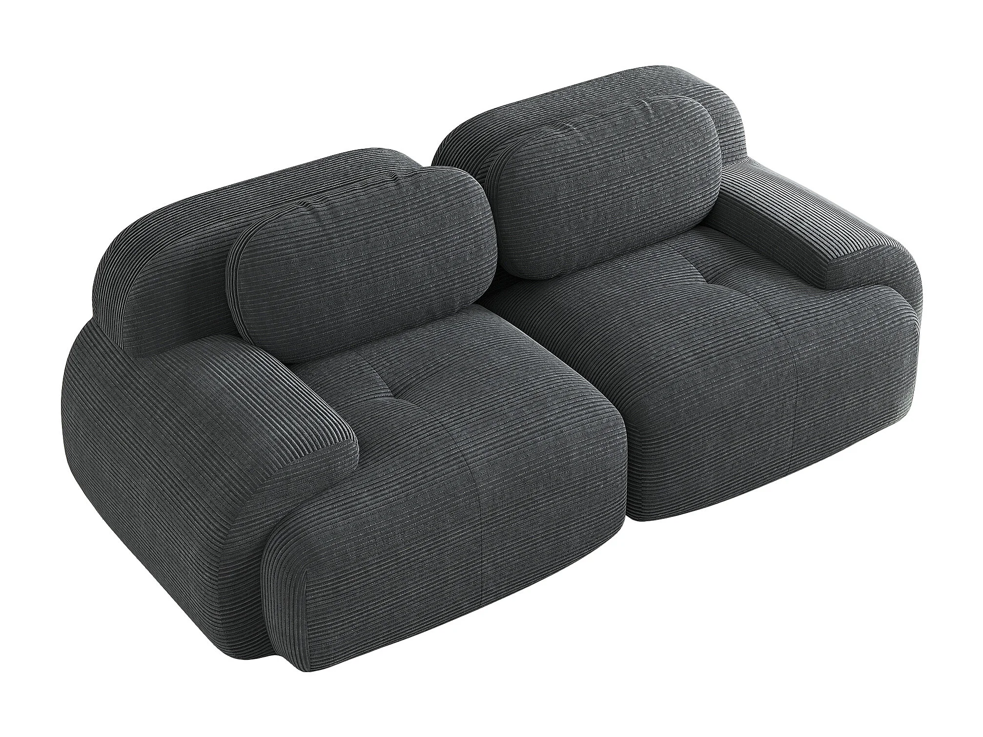 Canapé 2 posti modulabile in velluto a coste accoudoirs curvi mousse alta elasticità grigio 82''