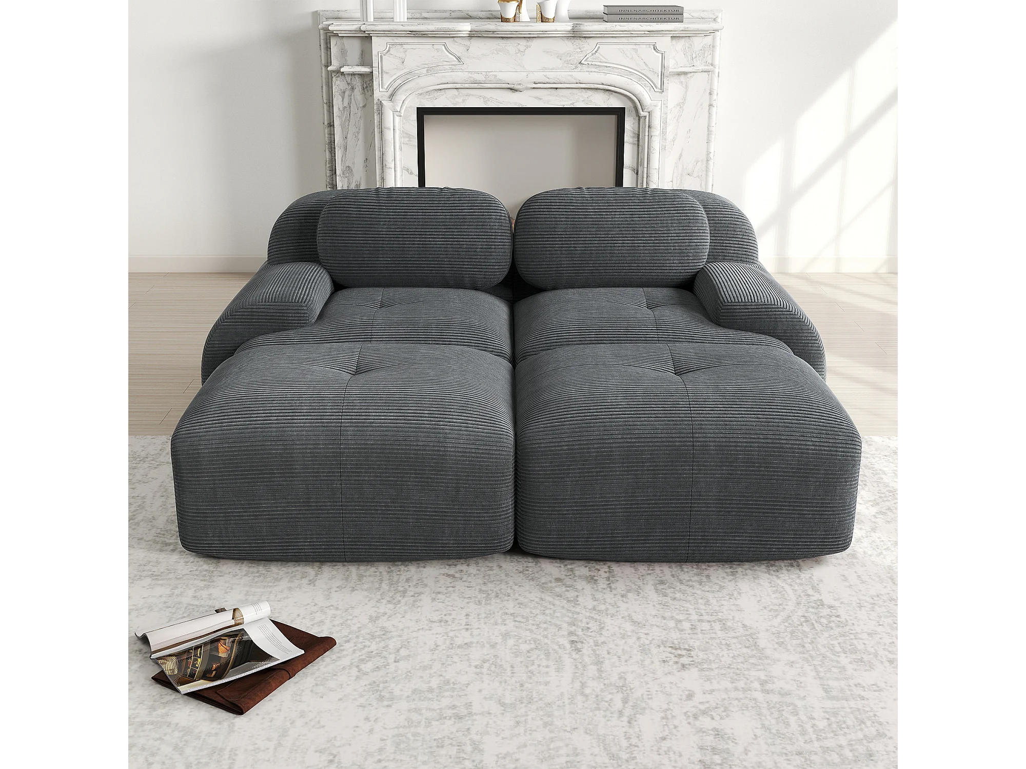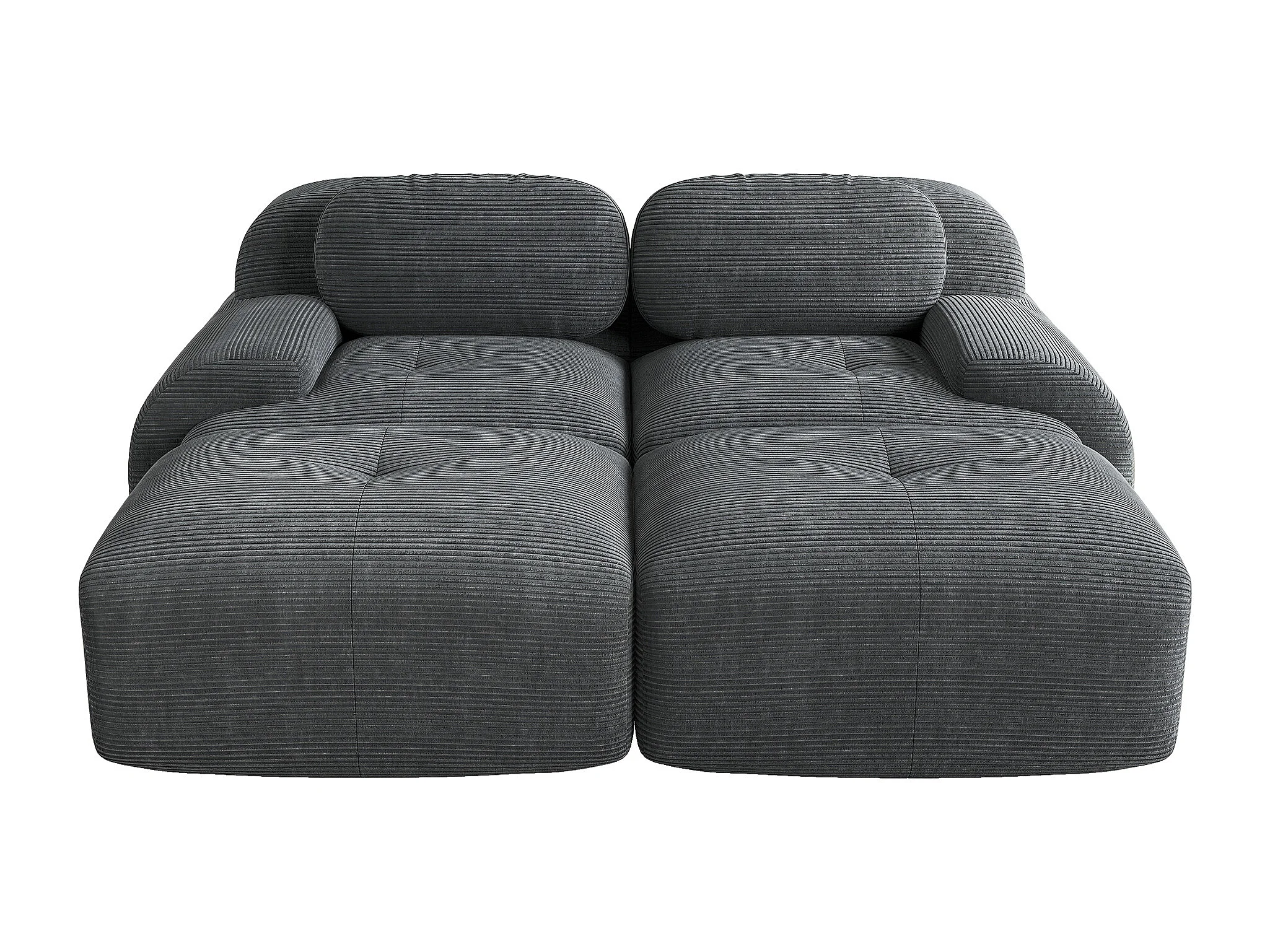 Canapé 2 posti modulabile in velluto a coste con chaise longue mousse alta elasticità grigia