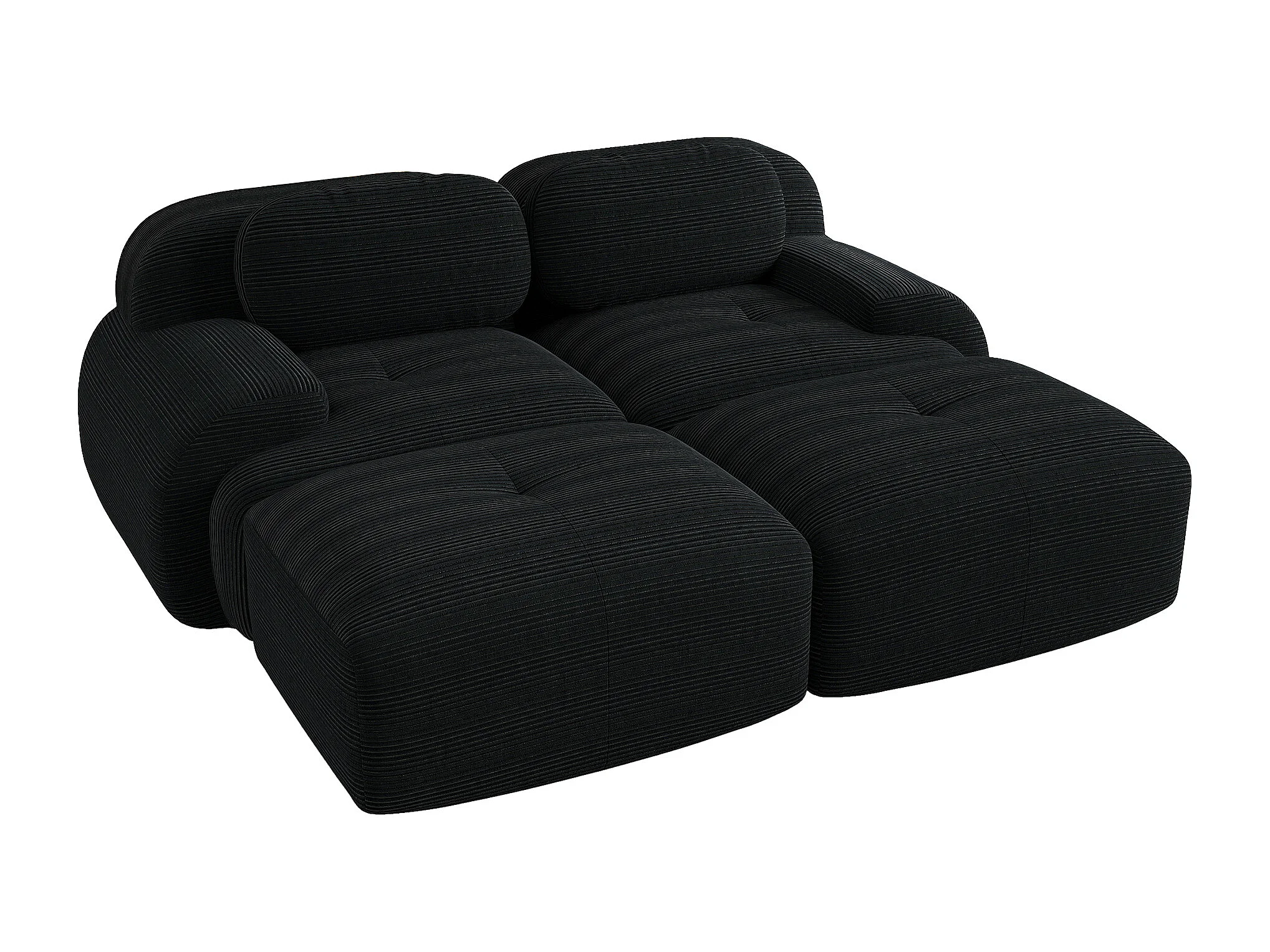 Canapé 2 posti velluto côtelé modulabile con chaise longue noir mousse haute résilience salon chambre