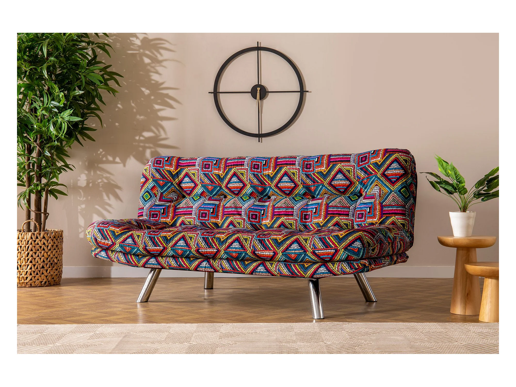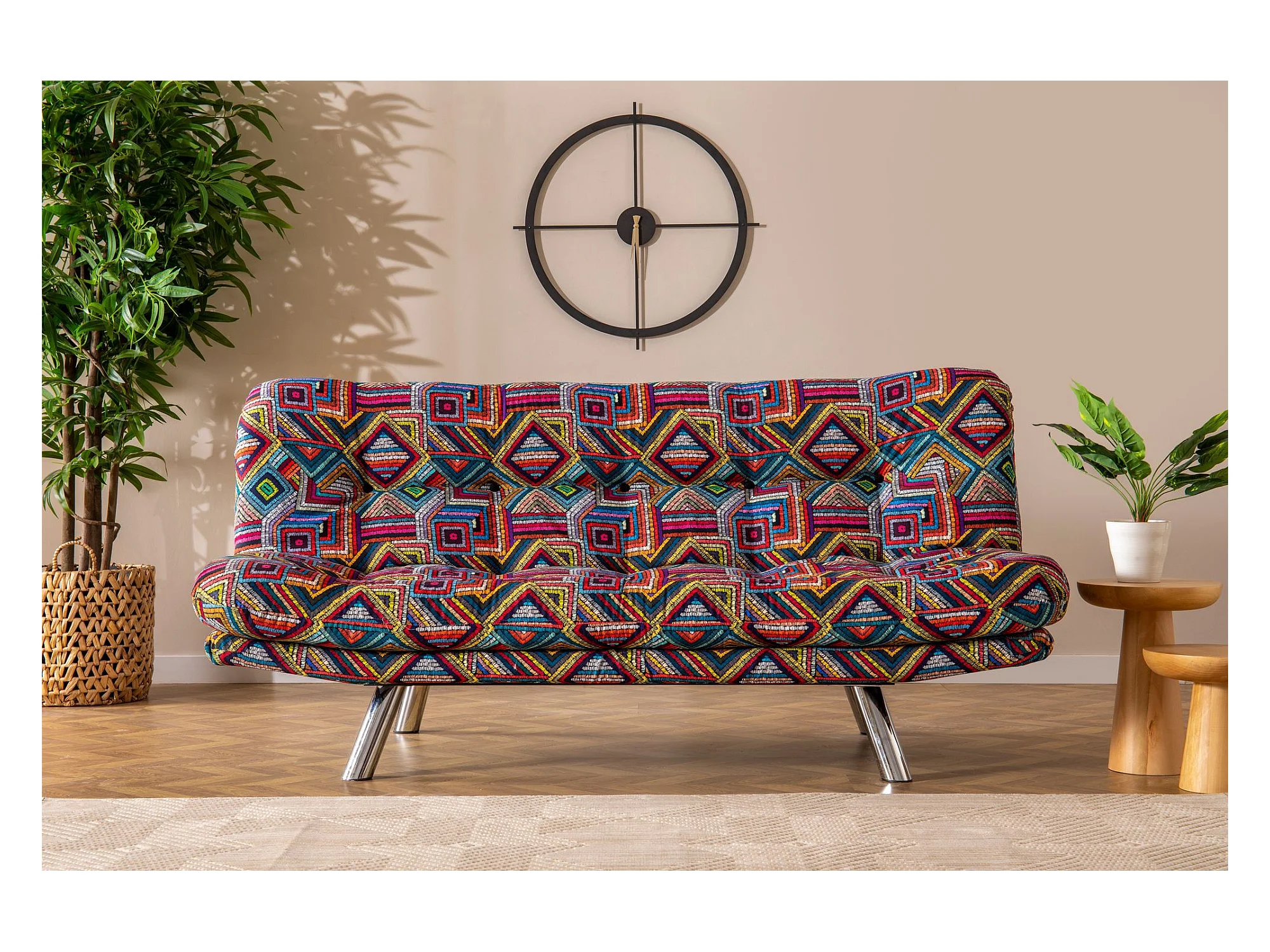 Canapé 3 places convertible Halora Tissu Motif Ethnique Multicolore